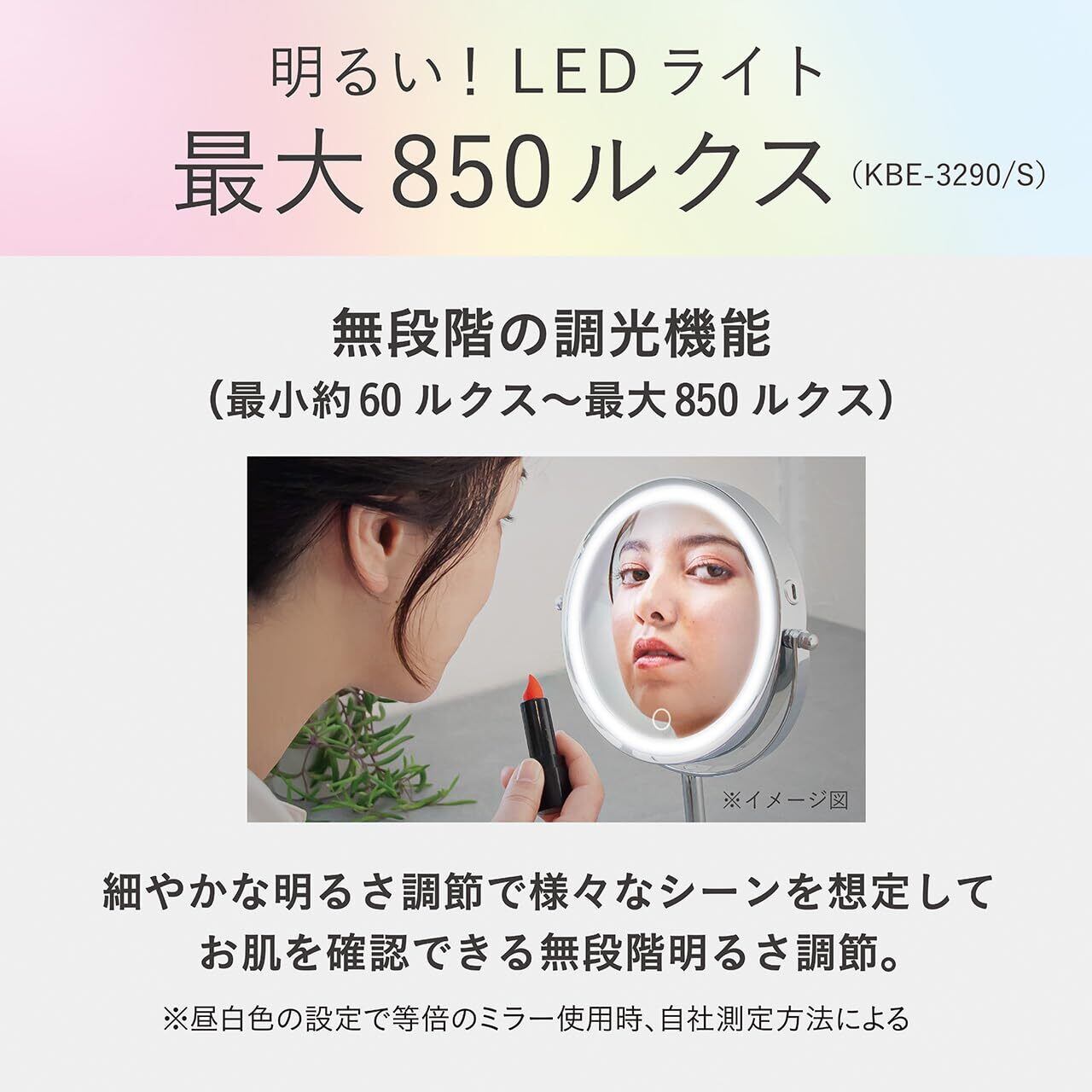 コイズミ LEDミラー 拡大鏡 φ190mm 調光 調色 USB 充電式 卓上タイプ シルバー KBE-3290/S