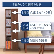 360°回転してタイトルが見えるので、読みたい本が探しやすく、大事な本をコレクションとして収納できます。