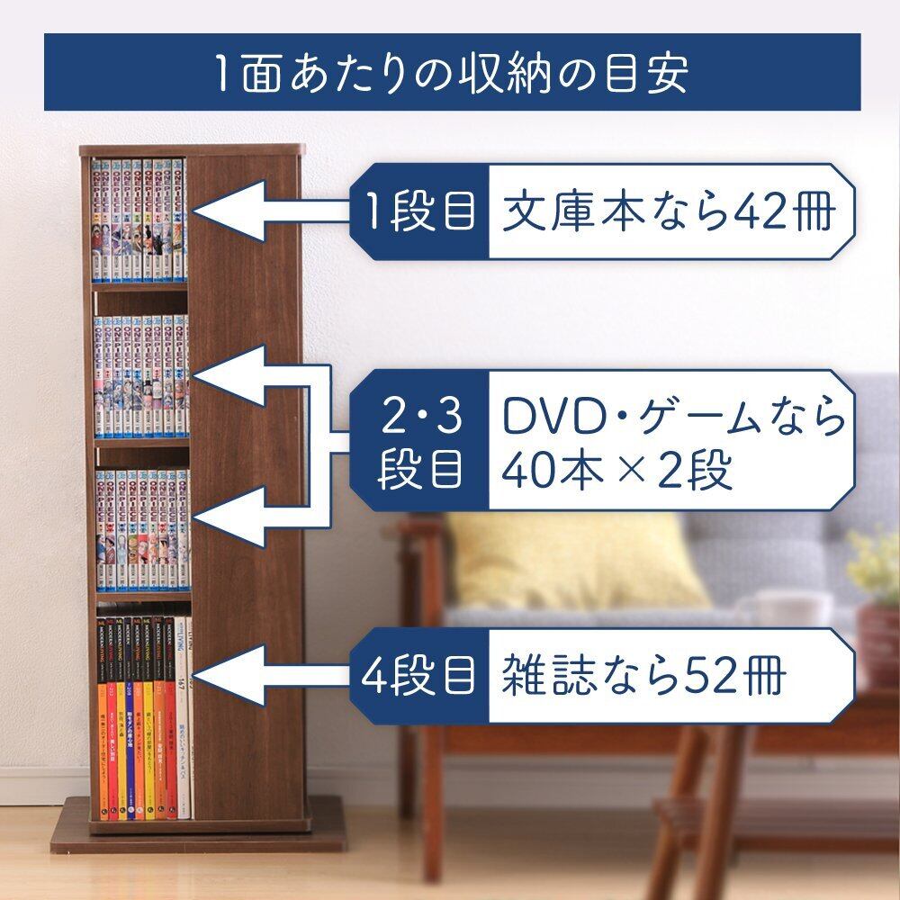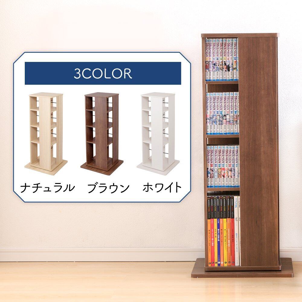 【在庫セール】アイリスオーヤマ 本棚 大容量 回転 棚 収納棚 ラック スリム 棚 おしゃれ ラック おもちゃ スライド 収納 コミック ラック 回転 4段 幅43×奥行43×高さ101.4cm ウォールナットブラウン CR-1000 | ニコニコSHOP