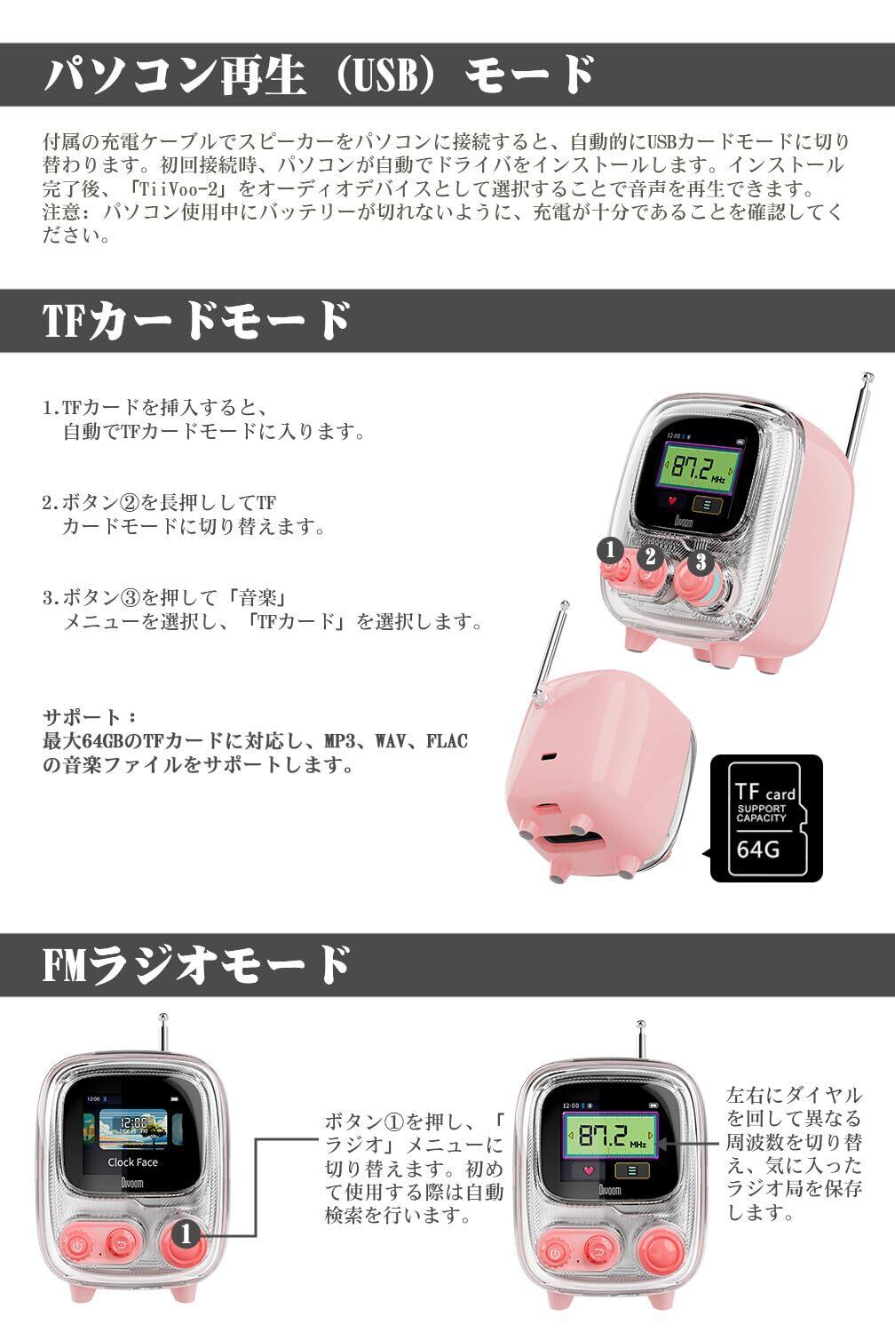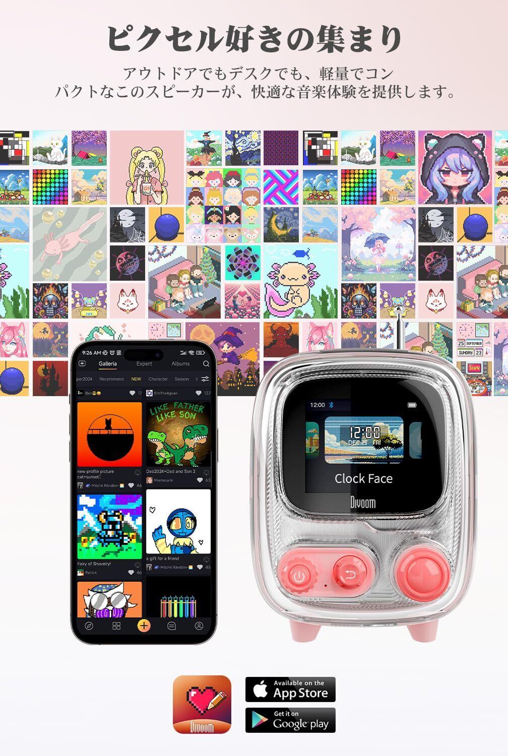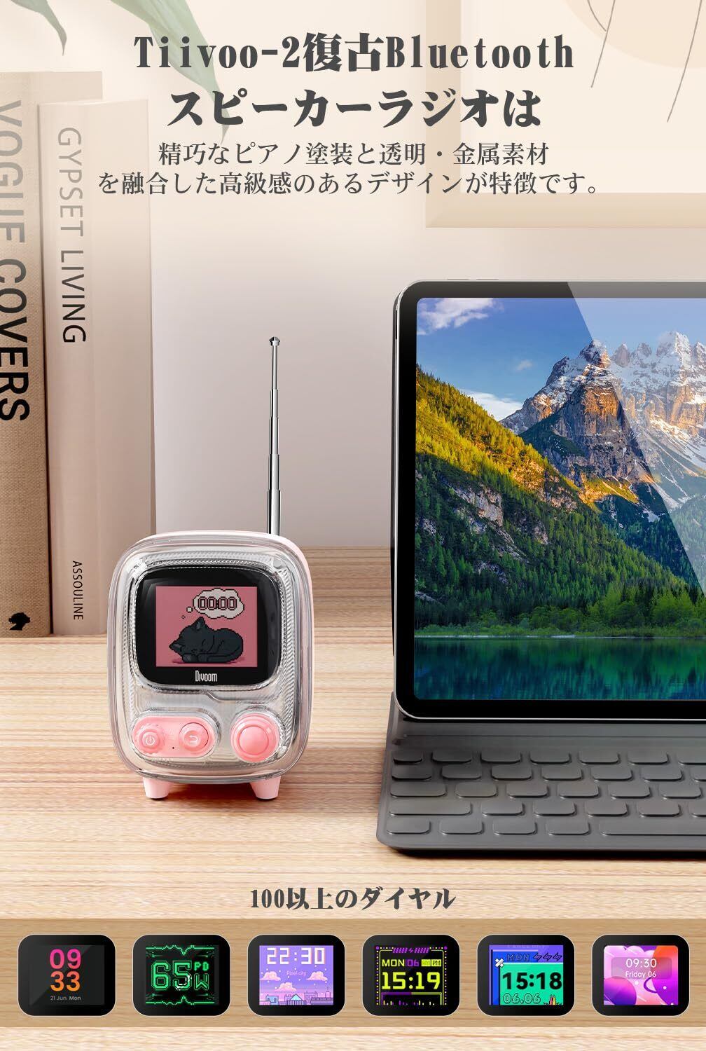 Divoom Tiivoo-2 レトロ Bluetooth スピーカー 付FM ラジオスピーカー 可愛い/ワイヤレス スピーカー 小型 おしゃれ/多機能オ ピクセルアート/時計/アルバムアップロードです/ホワイトノイズ/贈り物 Android/iPhone対応(ピンク)