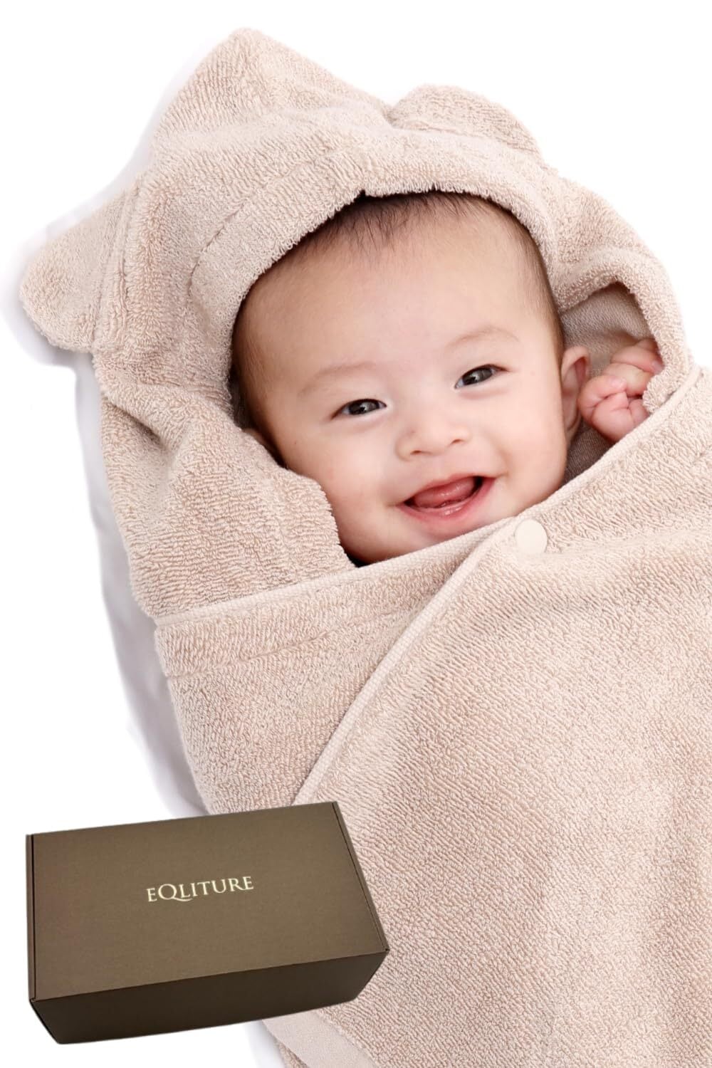 今治タオル EQLITURE クラウドファンディングで商品化 ベビーバスローブ 2重構造で長く使える 出産祝い おくるみ 男の子 女の子(ベージュ)