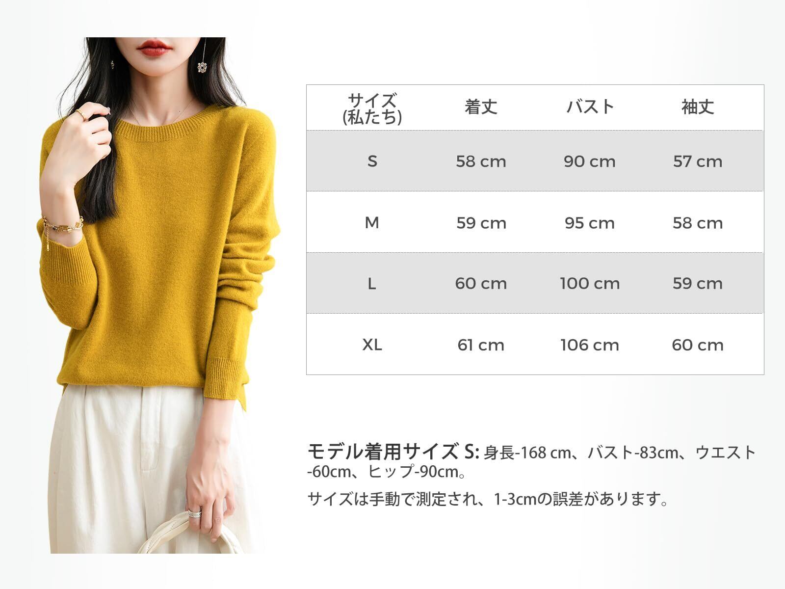 [Yokbeer] 100% メリノウール レディース ラウンドネック セーター 長袖 ニット プルオーバー トップス