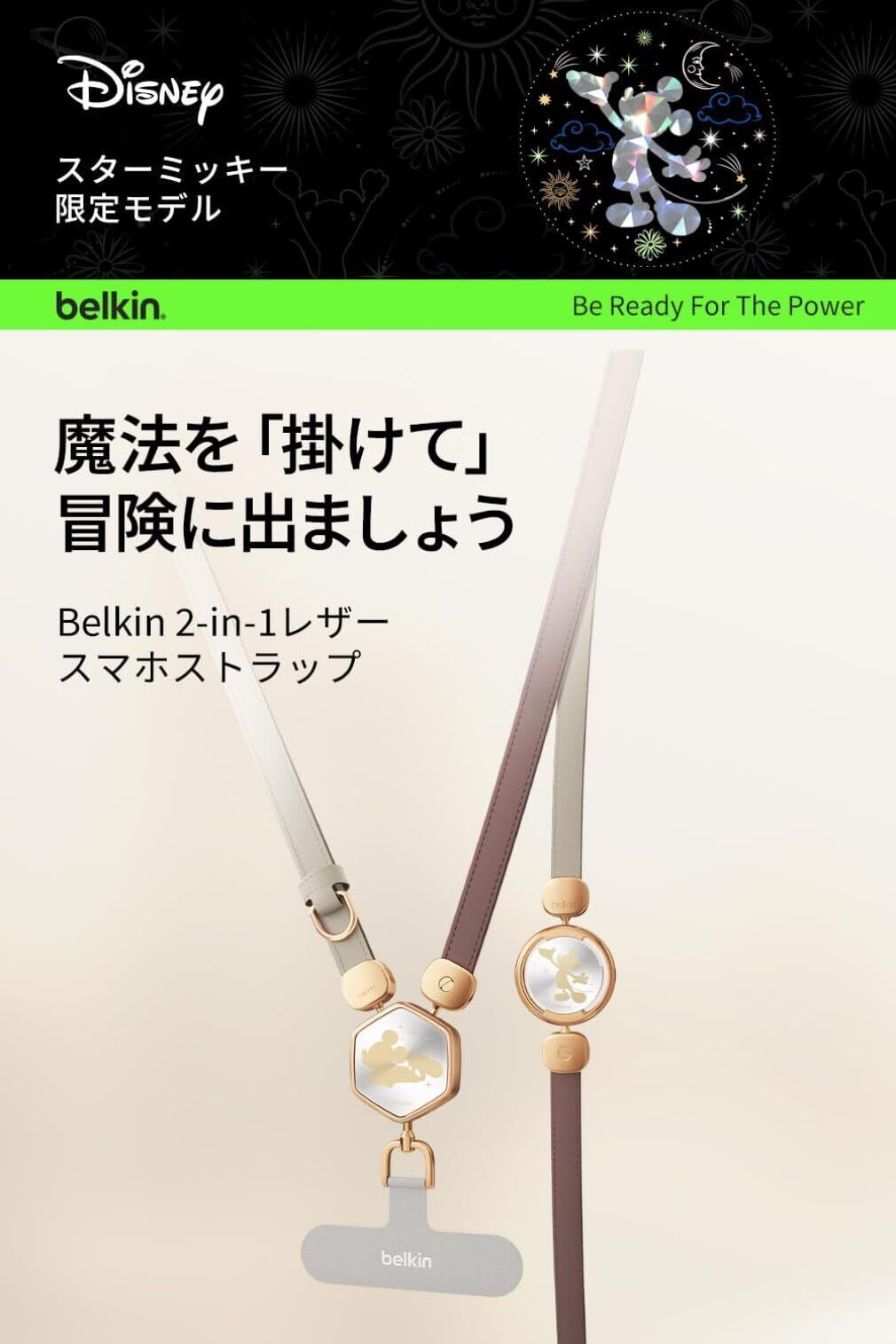【在庫セール】【スターミッキー】Belkin 2 in 1 スマホ ショルダー&リスト ストラップ レザー 斜めがけ/首掛け/肩掛け/手首 リバーシブル ストラップホルダー付属 MSZ003qcLD-DY
