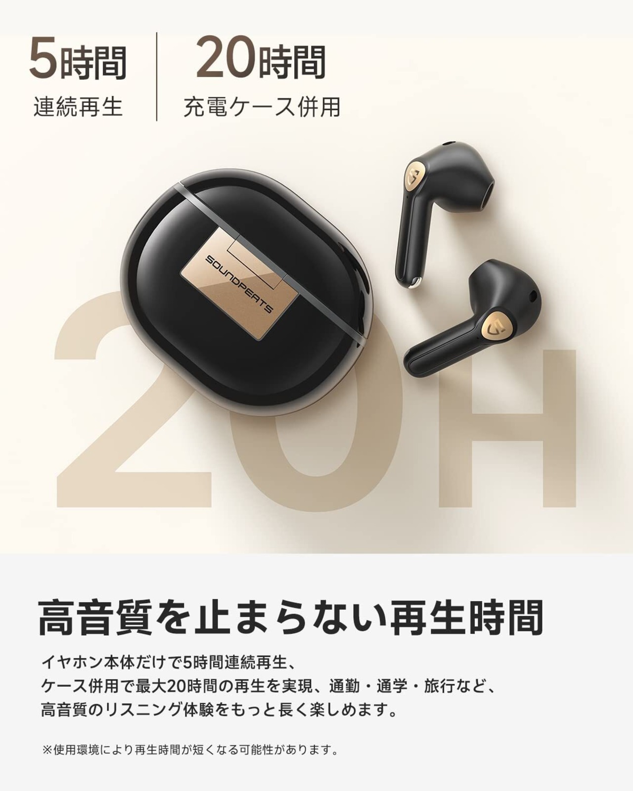【高音質のリスニング体験を長時間楽しめる】イヤホン本体が満充電の状態で最大5時間、付属の充電ケースを合わせて使うと、最大20時間の音楽再生が可能です。(※再生可能時間は音楽再生時の時間であり、音量、再生する内容、使用環境によって異なります) 電波法技適認証番号:018-210307。