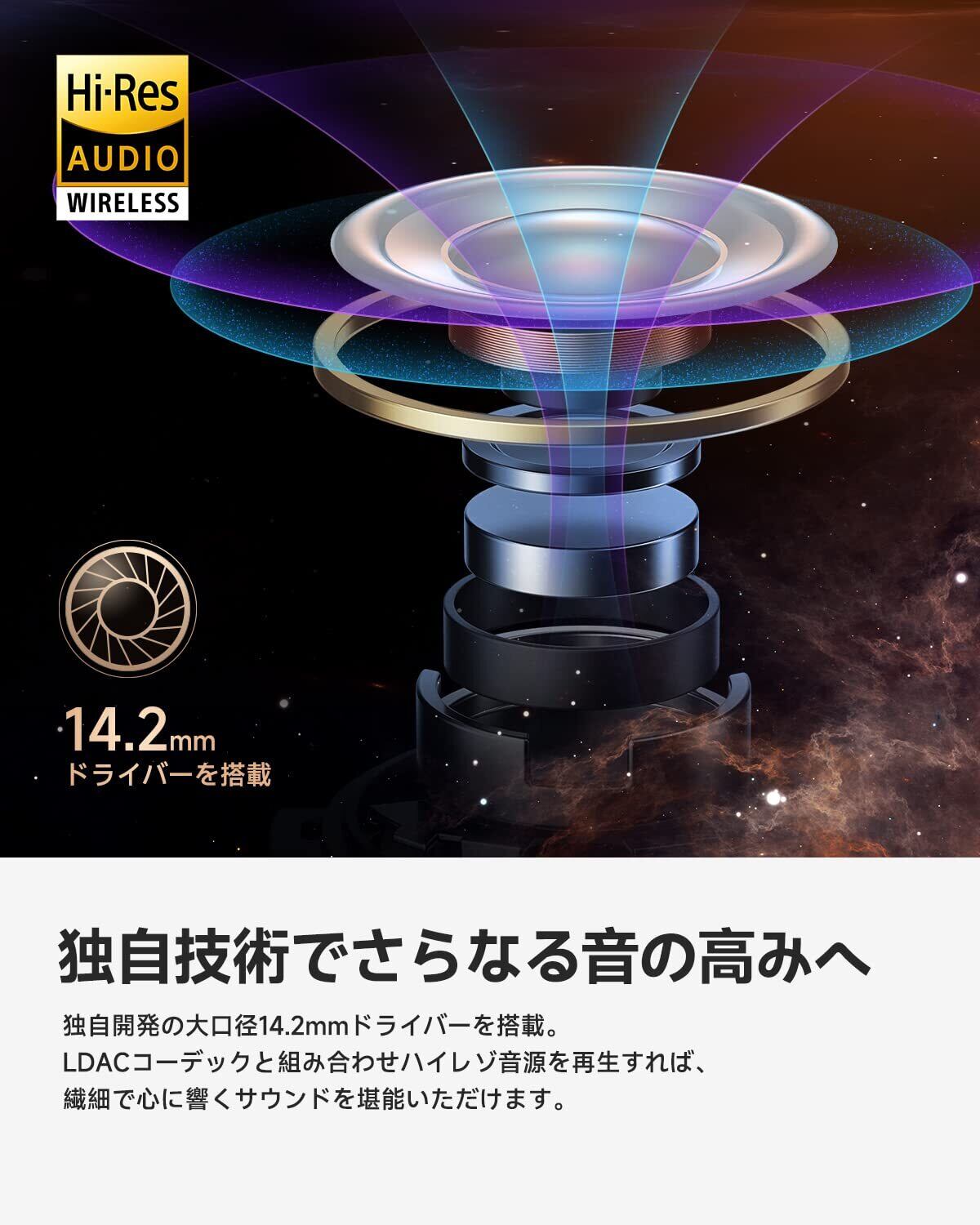 【14.2mmダイナミックドライバーのパワフルで自然な音】14.2mm大口径振動板採用のダイナミックドライバーを搭載しました。ずっしりと量感のある低域と、クリアで解像度の高い中・高音域も繊細に再現します。高音質コーデック「LDAC」と組み合わせれば、伸びやかで情報量豊かなサウンドを堪能いただけます。もちろんAACコーデックも対応しますので、iPhoneをお使いの方にも安心してご使用いただけます。