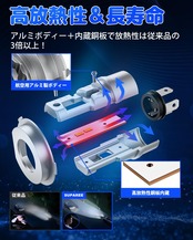 【優れた放熱性能&防水性能H4 LED】特製航空アルミヒートシンクを採用、最大限度放熱面積を増やして、優れた放熱効果を発揮します。更に独特のファンレス設計とした 、騒音などは一切ありません。二重放熱デザインで長持ちを実現。IP67 レベルの優れた防水性能で、短時間の浸水では全く影響は受けません。雨の日のドライブを安全、快適に!