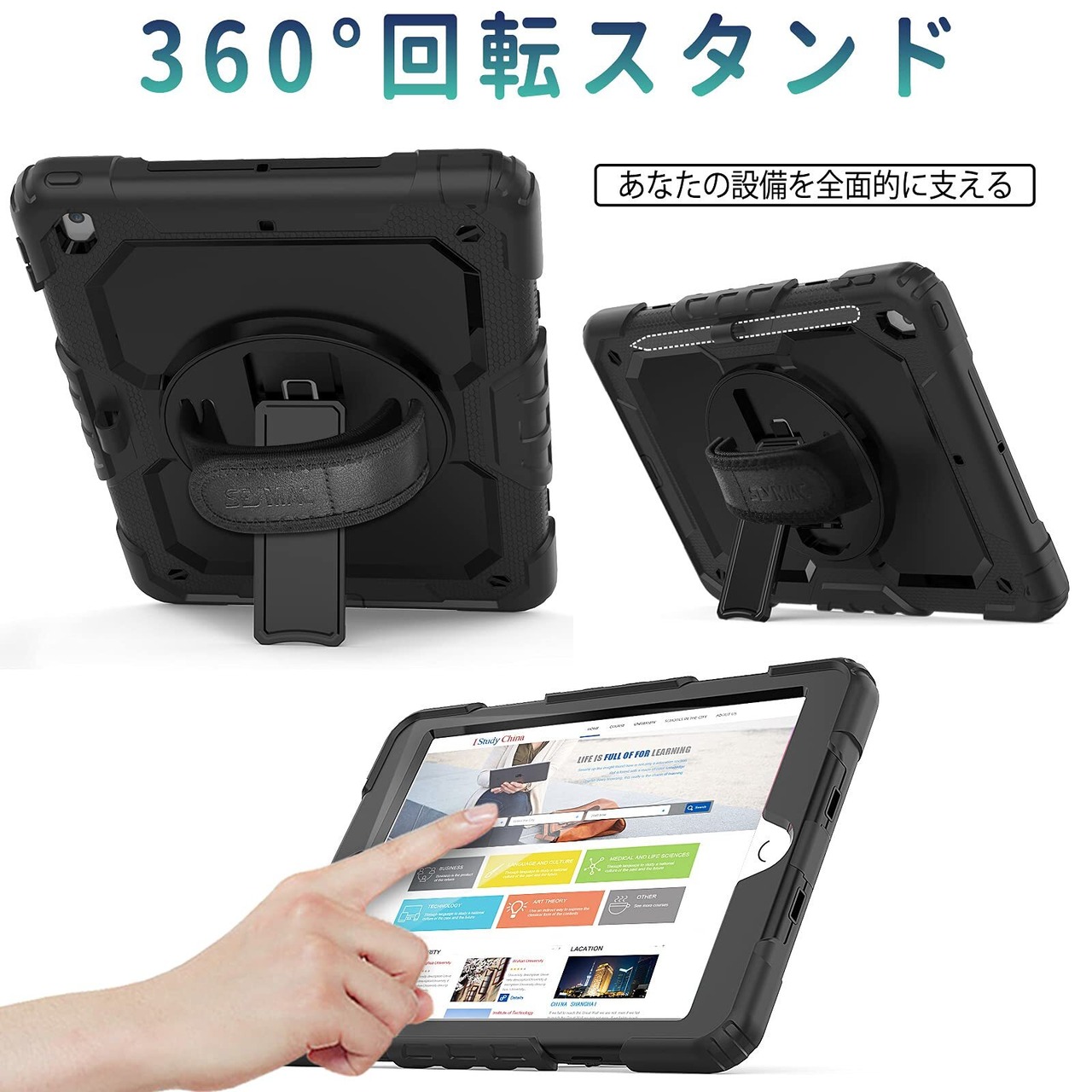 【2022最新】SEYMAC stock iPad 10.2インチ 第9/8/7世代 ケース 耐衝撃 保護フィルム付き ペン収納 360°回転スタンド ハンドストラップ ショルダーストラップ 全面保護カバー (ブラック) | ニコニコSHOP