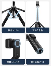 【折り畳み・軽量なスマホ手持ちジンバル】8段階の伸縮機能により、収納時は17.6cmと非常にコンパクトで、バッグやリュックに簡単に収納できます。軽量アルミ素材を使用しており、重量はわずか295g。軽量なアルミ合金素材を採用し、安定性や耐用性も抜群です、長期間の使用にも耐えられます。旅行、イベント、アウトドア、パーティーなどで活躍すること間違いなしです。さらに、この製品は、セルフショットや集合写真だけでなく、動画配信やTikTok、スマホスタンドとしても活用でき、非常に多機能です。Web会議やオンライン授業にも最適な三脚としても利用できます。これ一台で、様々なシーンで活躍する万能アイテムです。