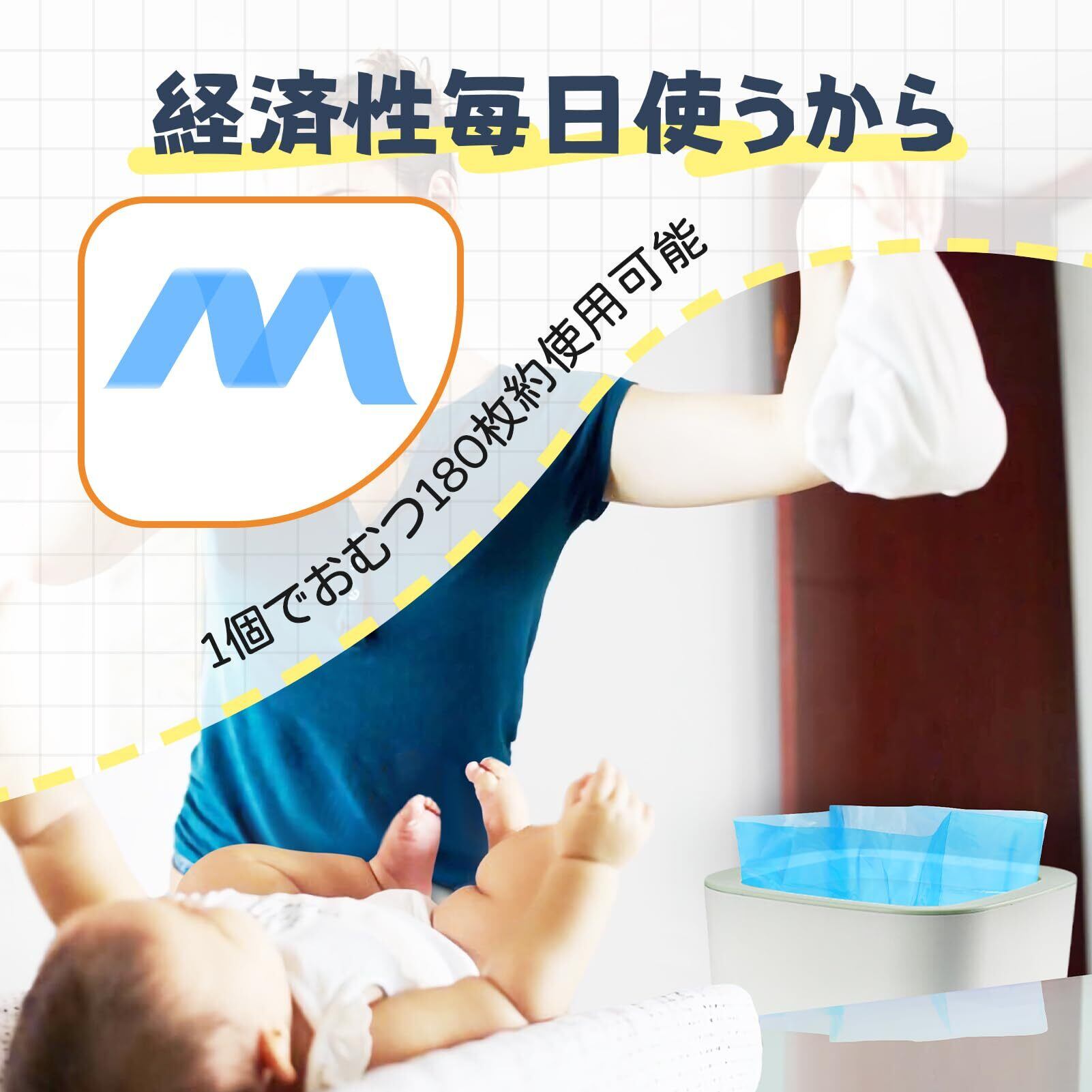 大容量設計: 1個あたり約220枚のおむつを処理可能。1日6枚使用の場合、約1ヶ月以上ご使用いただけます