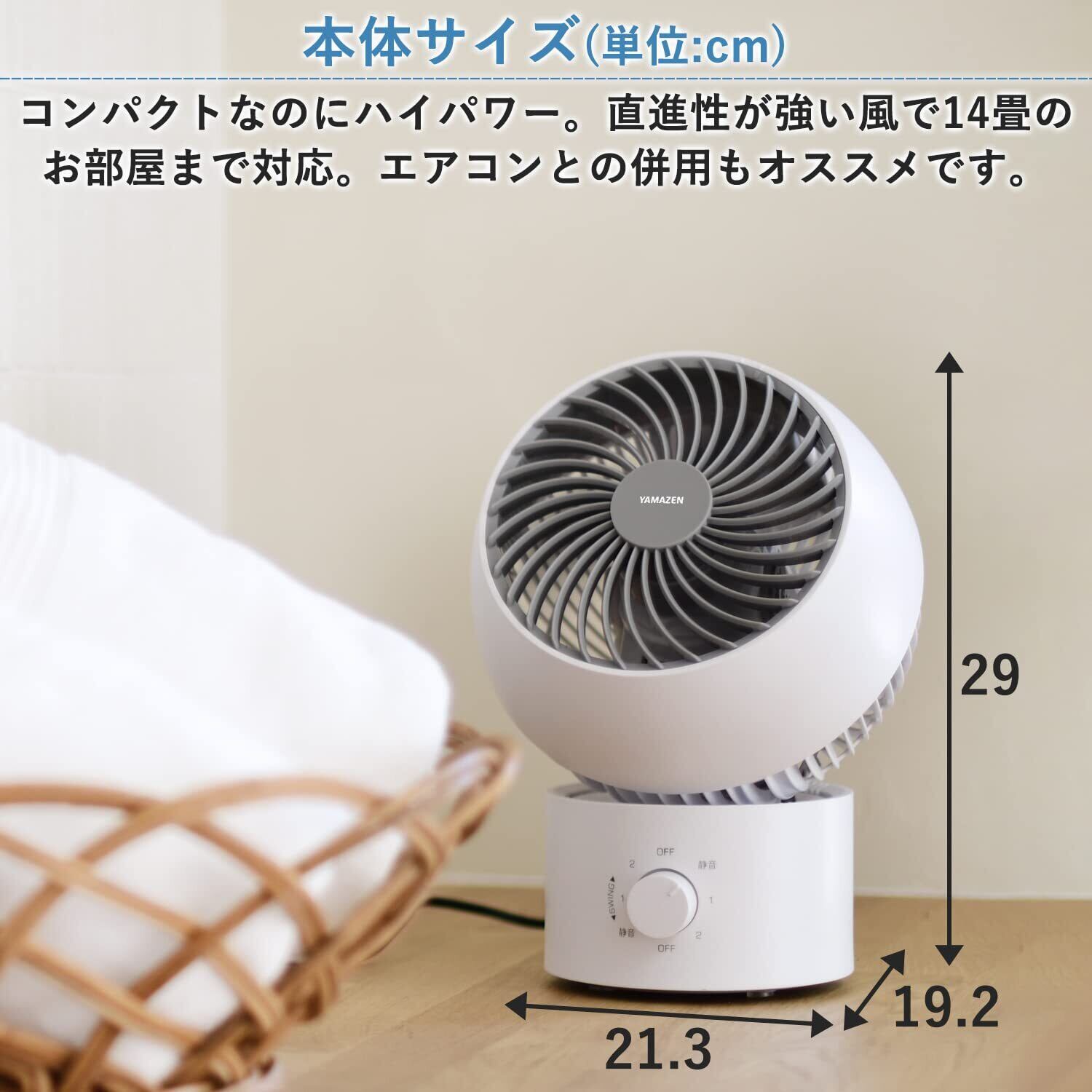【小型】直進性が強い風でお部屋の遠くまで風を届けるパワフル送風で、コンパクトながら14畳まで対応。お部屋のちょっとしたスペースに置けば、しっかり空気を循環させて温度のムラを解消します。また、新鮮な外気を取り込むのにもぴったりです。