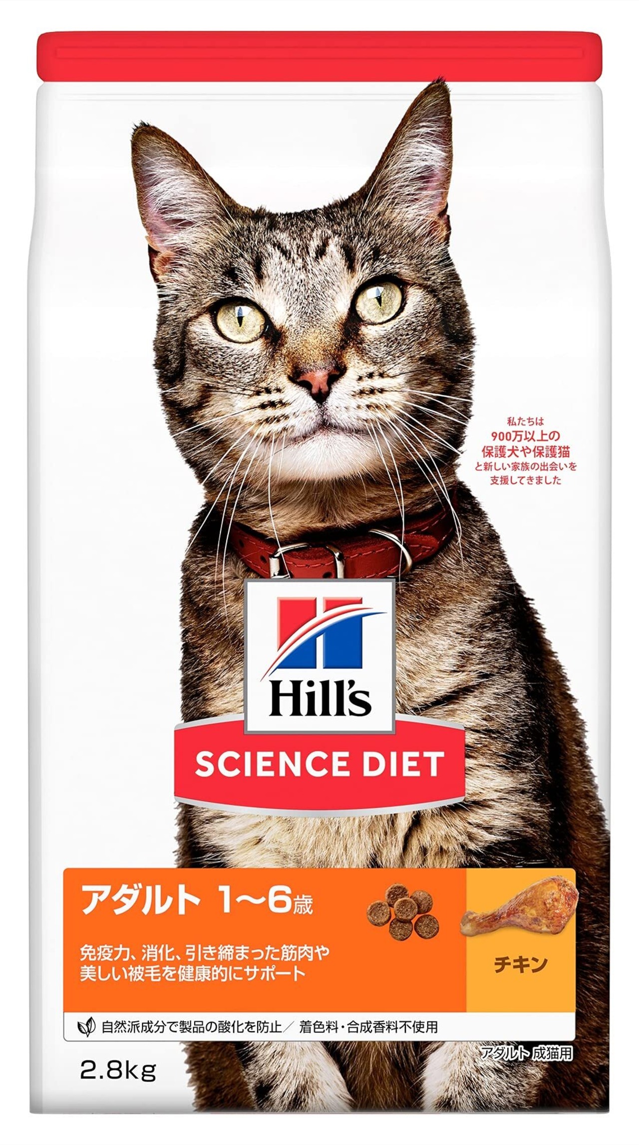 ヒルズ サイエンス・ダイエット キャットフード アダルト 1~6歳 チキン 2.8kg 成猫用 ドライ お試し トライアル