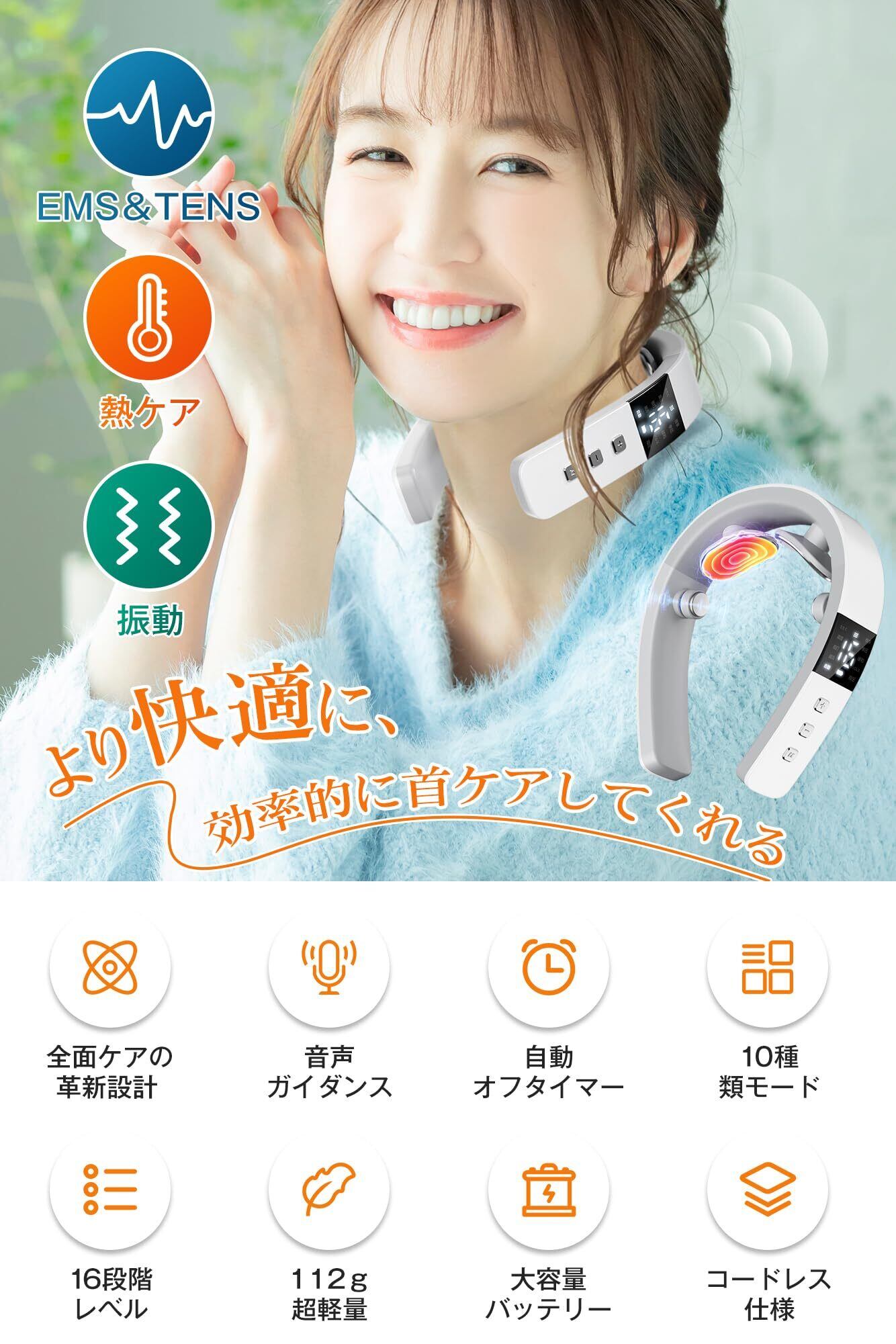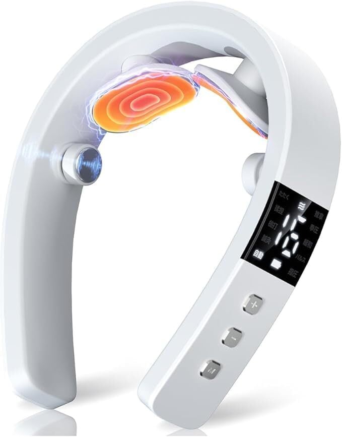 【2022最新】【新設計】 ネックケア 首 リラクゼーション器 理学療法士監修 (加温×振動×EMS&TENSのW効果) LED液晶ディスプレイ 10種類のモード 16段階の強度調整 軽量 USB充電式 コードレス 父の日 誕生日プレゼント お祝い 男女兼用 日本語説明書を同梱 (ホワイト) | ニコニコSHOP