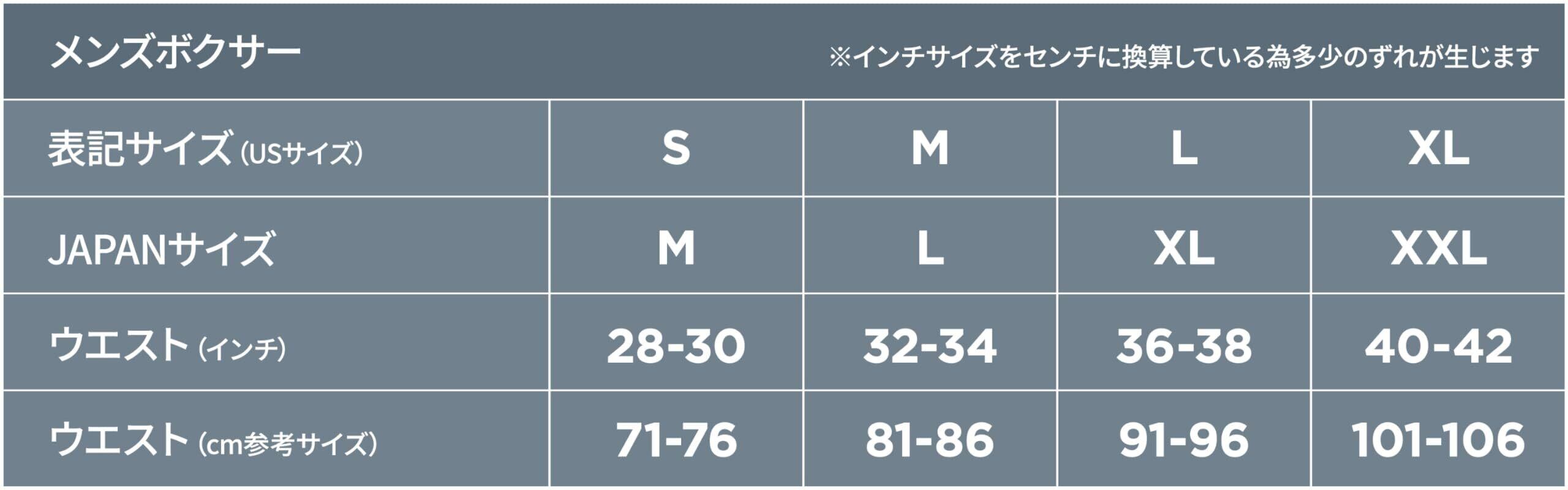 S=日本サイズM相当(ウエスト71cm~76cm)、M=日本サイズL相当(ウエスト81cm~86cm)、L=日本サイズXL相当(ウエスト91cm~97cmm)、XL=日本サイズXXL相当(ウエスト102cm~107cm)