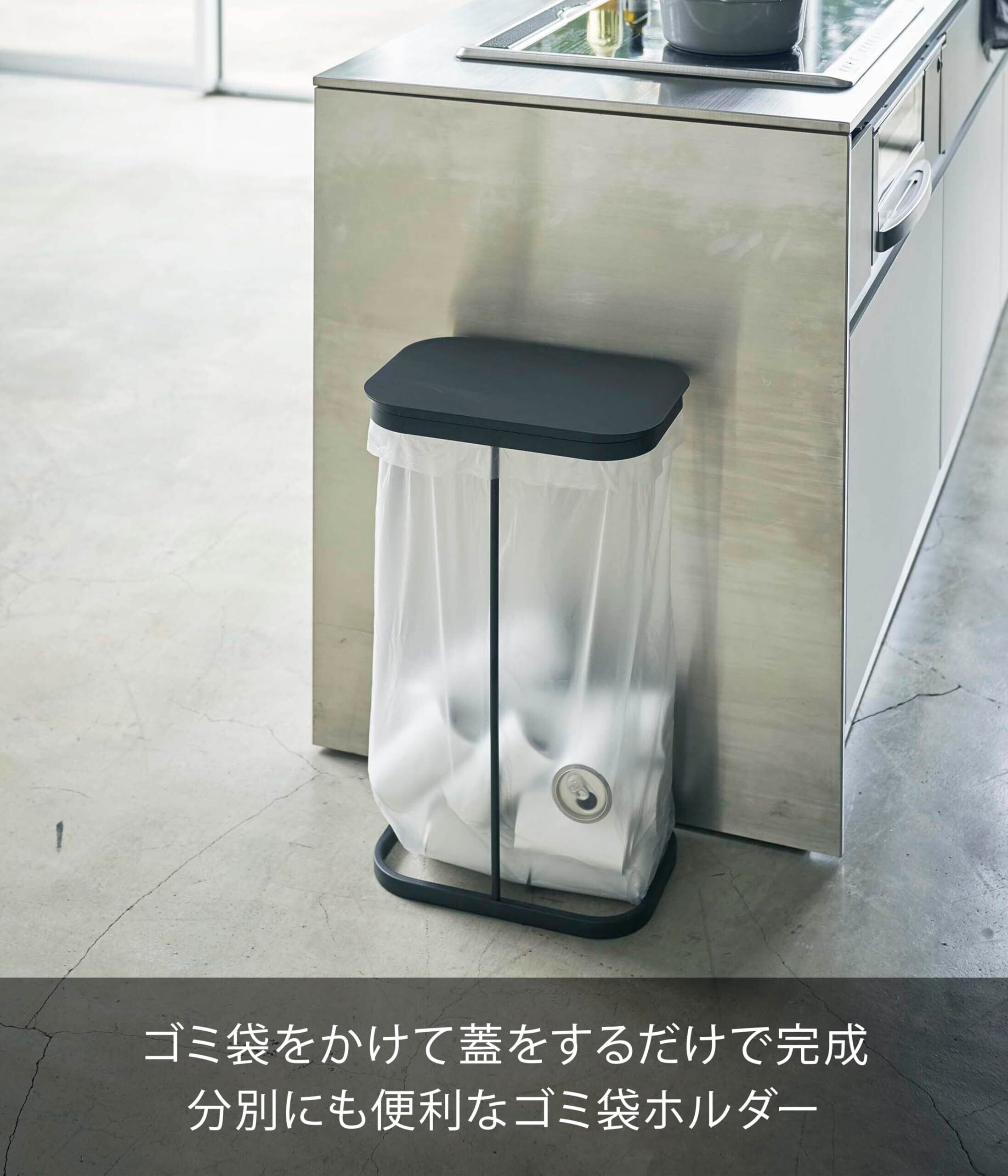 山崎実業(Yamazaki) 横開き分別ゴミ袋ホルダー ブラック 約W22XD34XH56cm ルーチェ ゴミ箱 ワイドな開口部 ゴミ袋が取り出しやすい 4908