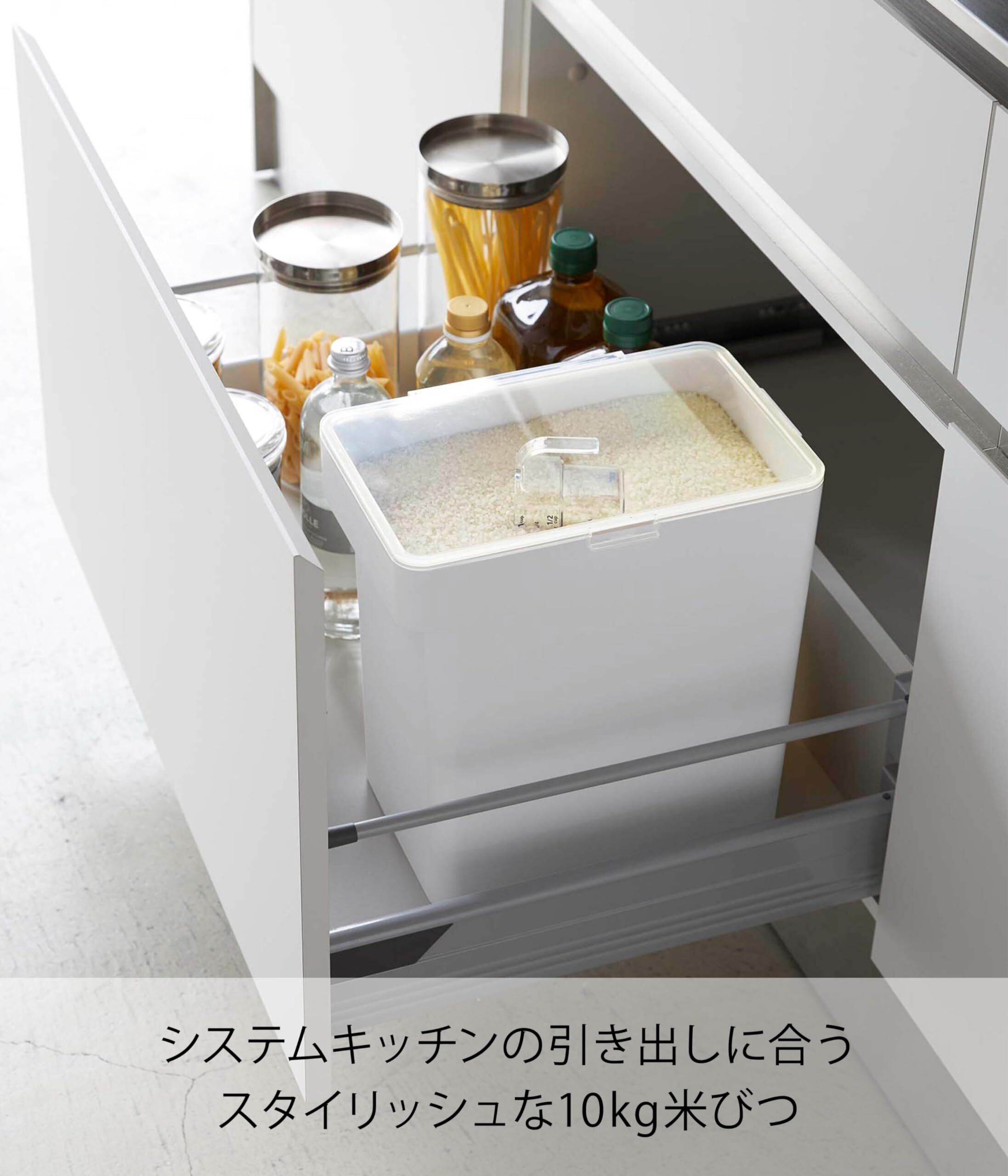 山崎実業(Yamazaki) 密閉 米びつ 10kg 計量カップ付 ホワイト 約W30.7XD19.7XH31.2cm タワー 湿気 酸化防止 5423