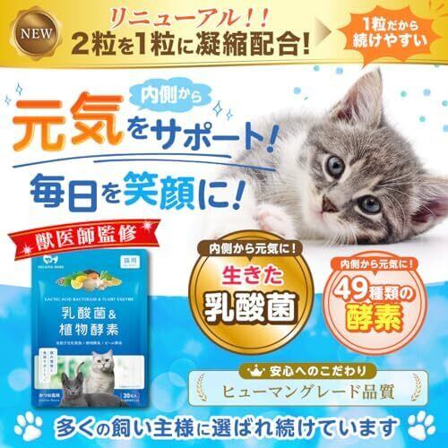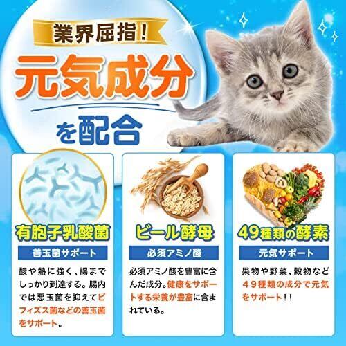 【乳酸菌&酵素で愛猫の元気をサポート】キャットフードに不足している生きた乳酸菌と酵素を補い、愛猫の腸内環境をサポートします。