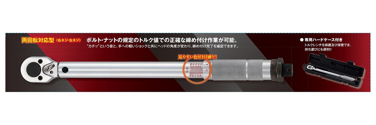 ・専用のハードケース付でトルクレンチを保護及び保管ができ、持ち運びにも便利