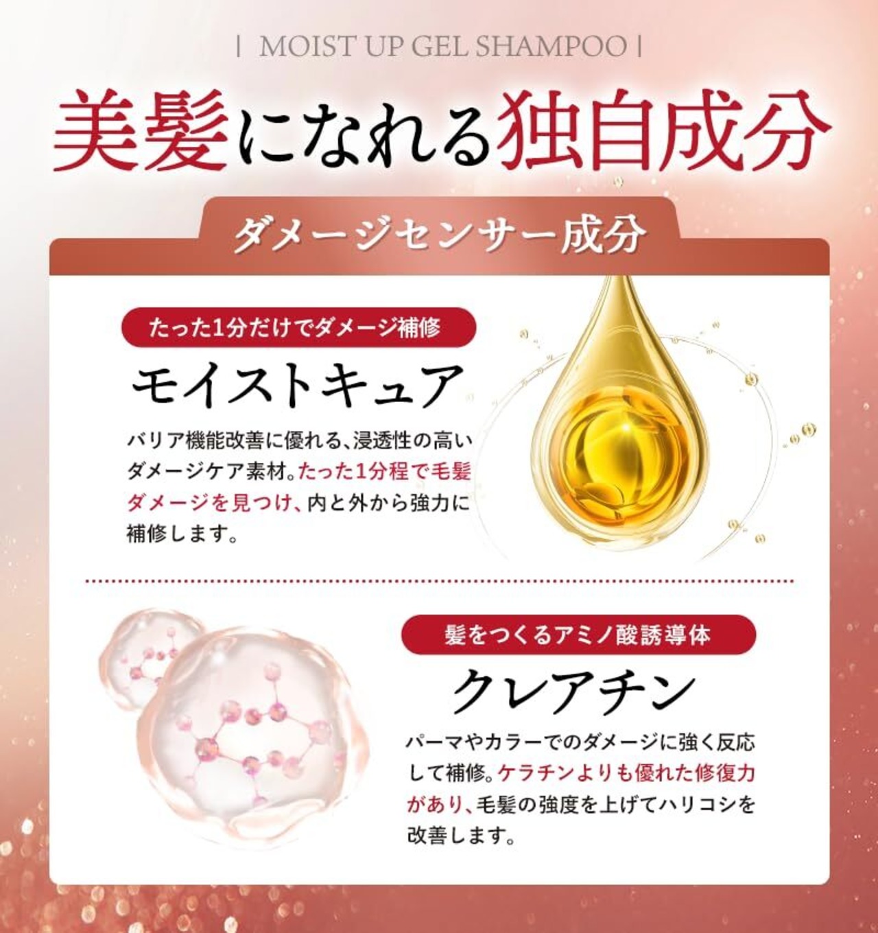 ✨[ 髪 や 頭皮 に保水するスキンケア発想の ジェルシャンプー ] 『 フエッタリッチ モイスト アップ ジェルシャンプー 』のベースは美容液などにも使われている「保水 ジェル 」です。抱え込んだ多量の美容成分で、 頭皮 はもちろん 髪 の内も外も贅沢に潤いを保ちます。 ※効果には個人差がございます。