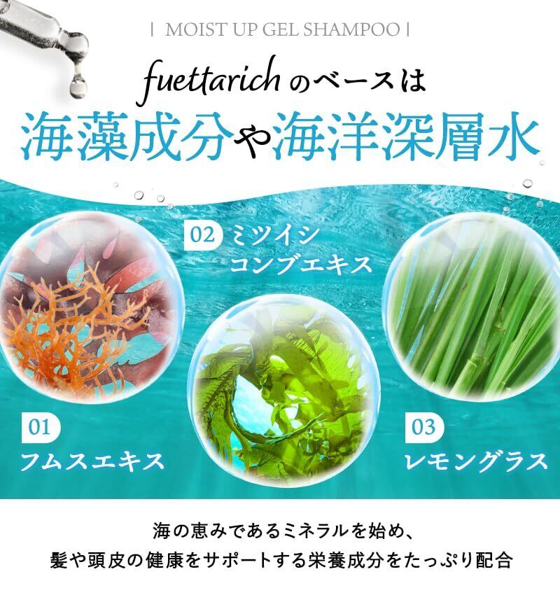 ✨[ ダメージ を補修しながら洗浄 ] 『 フエッタリッチ モイスト アップ ジェルシャンプー 』は臭い・ フケ ・ 痒み の原因となるつまりなどを抑えます。「足りないモノを与えて、いらないモノを取り除く」洗うたびに美髪に促してくれるシャンプー です。 ※効果には個人差がございます。