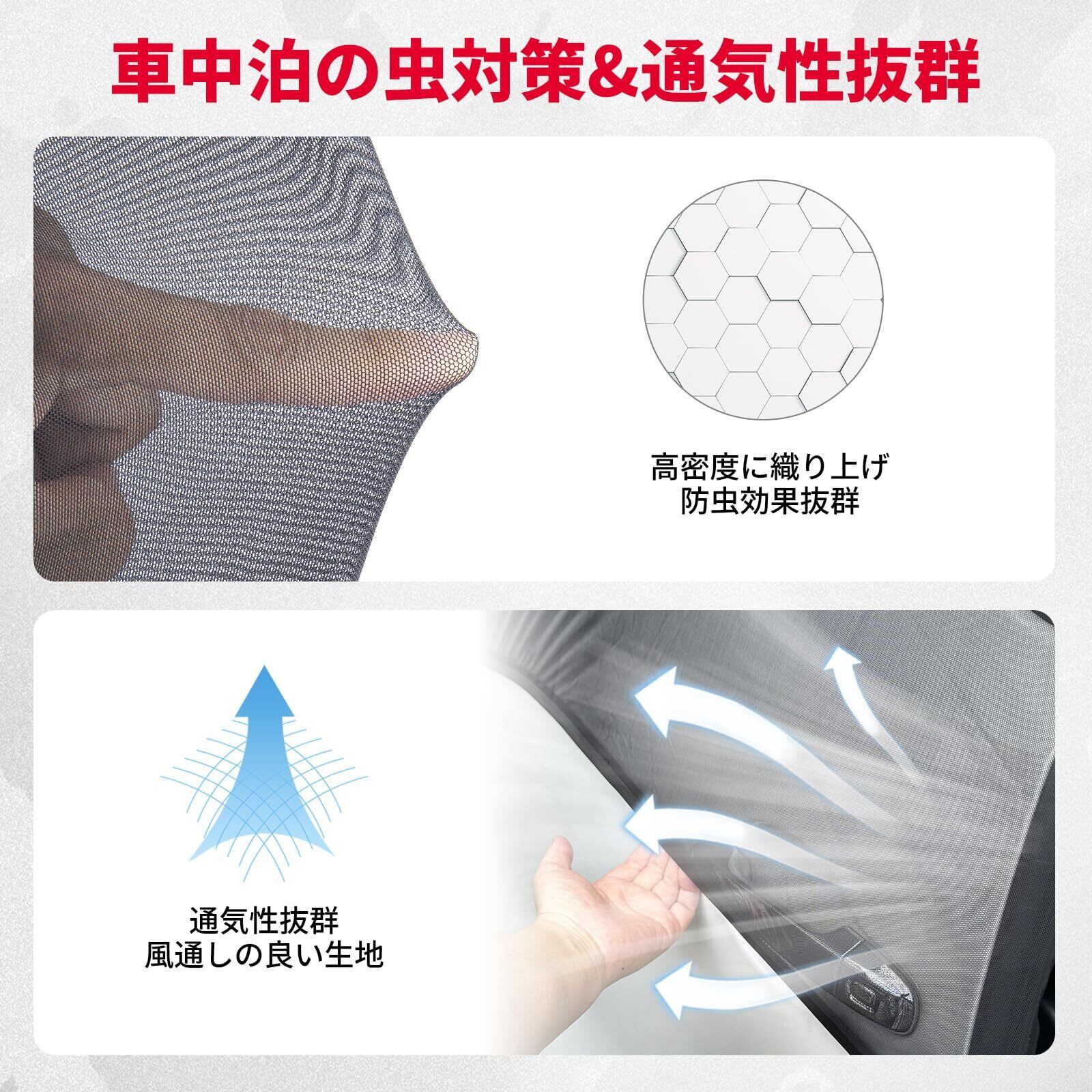 【車中泊の虫対策】車用網戸は目の細かいメッシュ生地なので、車内への虫の侵入を防ぎます。またメッシュで風通しがよく通気性が抜群です。虫は入らず風は入るで快適に過ごします。