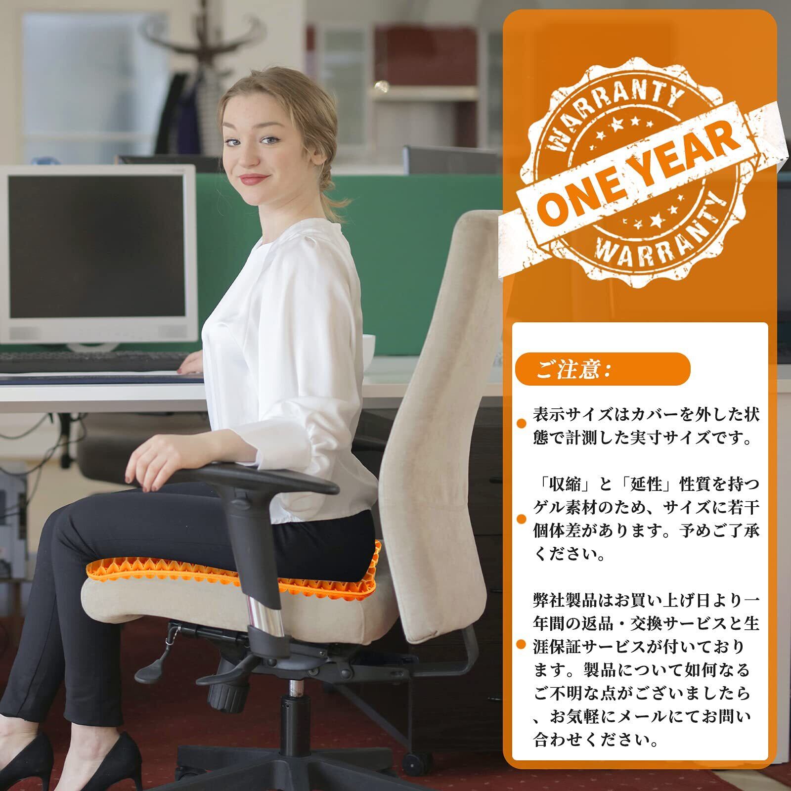 【柔らかく、正しい座り方】柔らかい座り心地と安定したサポート力を追求。生卵をクッションの上に置き、その上から座っても割れません。衝撃吸収に優れたジェルを、体圧分散に優れた蜂の巣状のハニカム形状にし、長時間の座り作業をする方に最適です。