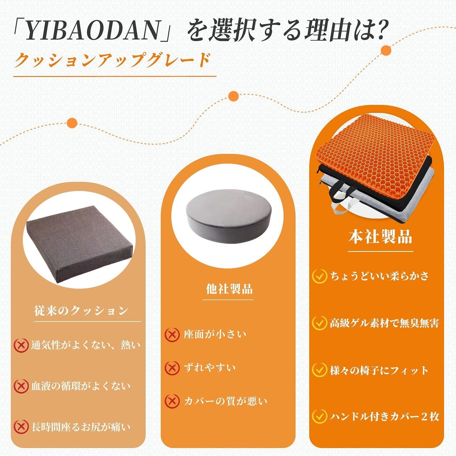 【人気商品】Yibaodan ゲルクッション 二重ハニカム構造 クッション 超通気 座布団 四季通用 蒸れない 座り心地 両面使用可能 在宅勤務 テレワーク オフィス 自宅 車 ゲーミングチェア 椅子用 洗えるカバー付き | ニコニコSHOP