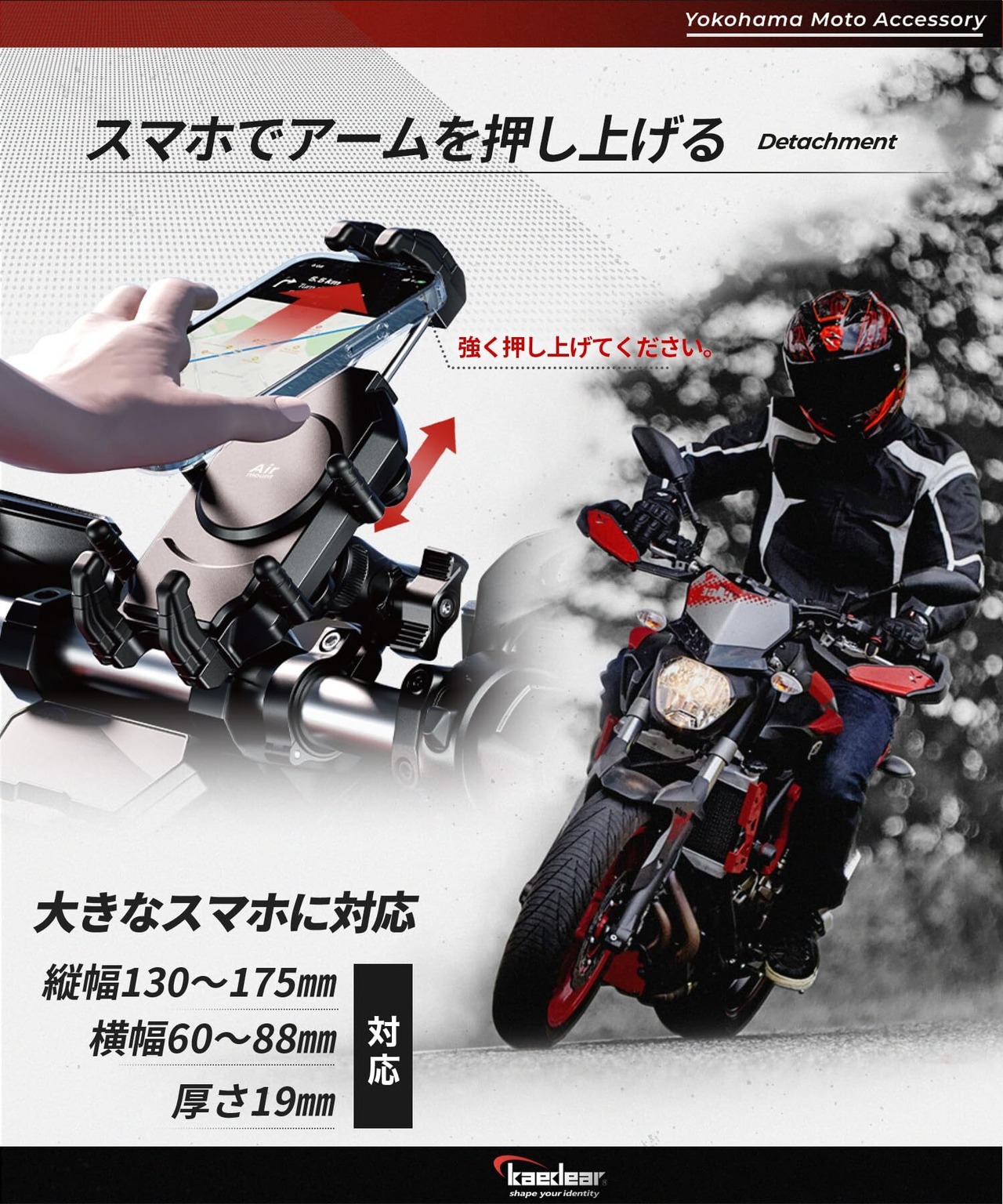 【数量限定】Kaedear(カエディア) バイク スマホホルダー 充電 携帯ホルダー 振動吸収 Airマウント 一体型 QI ワイヤレス充電 USB電源, デビルホーンQI USB/Air Mount KDR-M26A-BK (充電スマホホルダー) | ニコニコSHOP