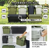 ●耐荷重100kg!ベンチにもなる座れる収納ボックス。●室内での使用はもちろん山、海、川などに!さらには自宅の庭にもOK。●スタッキング(積み重ね)可能だから車にも積みやすい。●防災グッズを中に閉まっておけば、いざという時にも大活躍します。●平らになった天面。不安定なものを置いても安心です。●スタッキングができるので場所を取りません。●ジャンプギア、小物の収納に。●持ち運びに便利な大きなバックル付。●耐荷重100kgの頑丈さ。●ベルトガイドに沿ってベルトを通せます。
