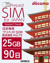 Docomo プリペイドSIM 日本 25GB 90日 sim プリペイド データ専用 4G LTE 物理SIM/prepaid sim 25gb 90days japan travel (25GB/90日)