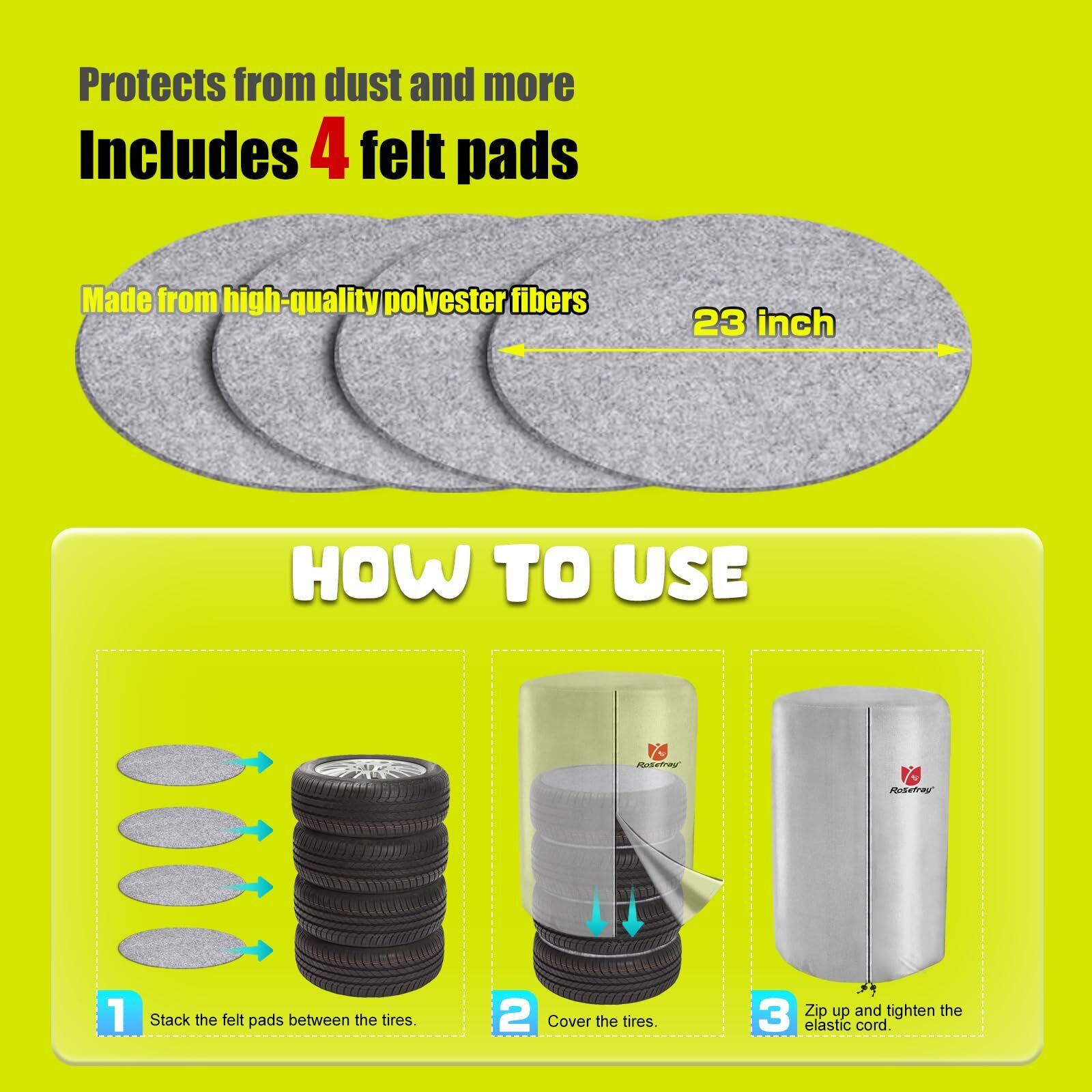 Rosefray タイヤカバー 屋外 フェルトパッド4枚付き 防水 頑丈で引き裂き抵抗 4本タイヤ保管 420D 幅65*高さ90cm 軽自動車用(12/13/14/15インチ)ブラック