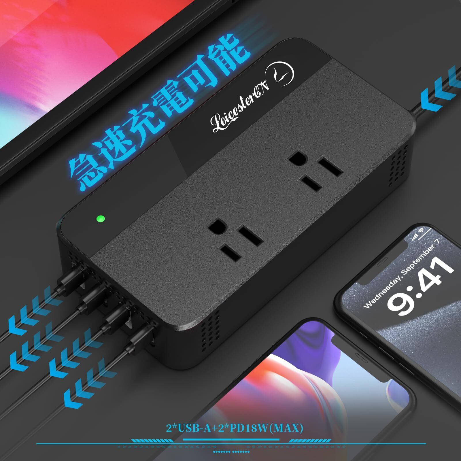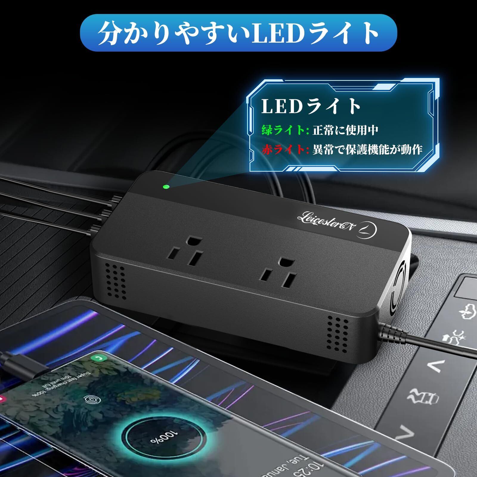 【新春セール】LeicesterCNL LST インバーター 200W カーインバーター シガーソケット DC12VをAC110Vに変換 シガーソケット コンセント 急速充電対応 USB給電4口 USB-Cポート AC100V電源2口 車 コンセント コンバーター 車載用インバーター コンパクト&シンプル