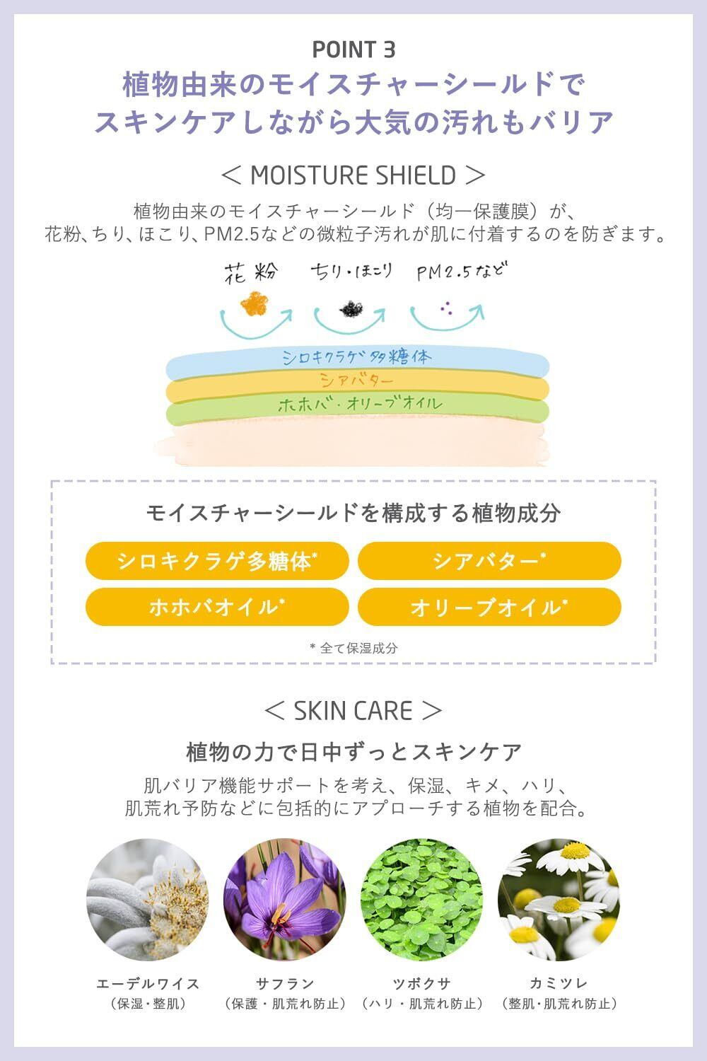 天然ミネラルフィルターを搭載したノンケミカル日焼け止め/天然ミネラルで色ムラ・くすみを補正し、美肌演出/植物由来のモイスチャーシールド… 表示を増やす