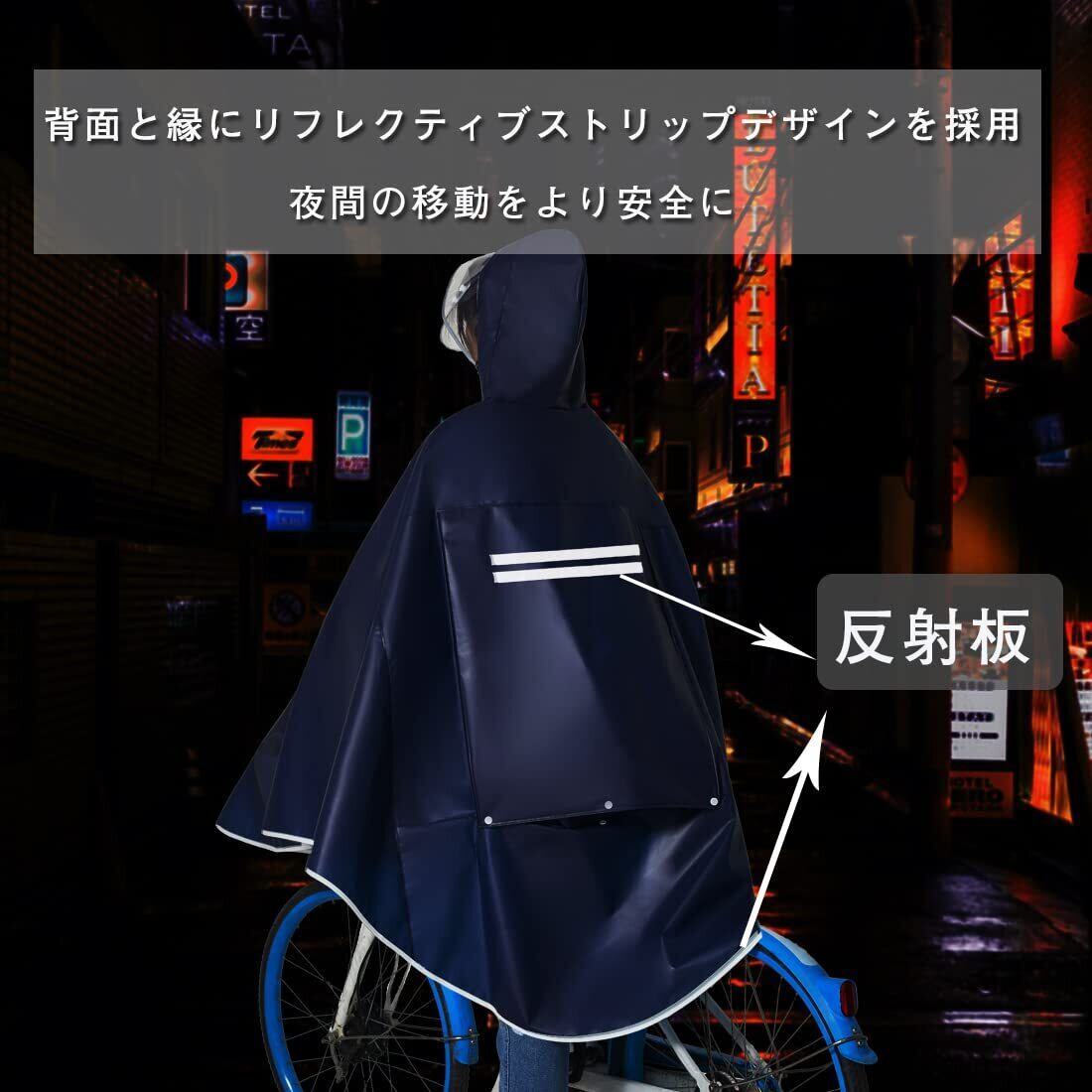 [Facecozy] 男女兼用 レインコート 自転車 二重ツバ 自転車用 レインコート レディース 反射テープ付きレインポンチョ 防水レインポンチョ 長いポンチョ 梅雨対策 耐久性 軽量 レインコート 雨合羽 サイクル仕様 通勤通学 、収納袋付き