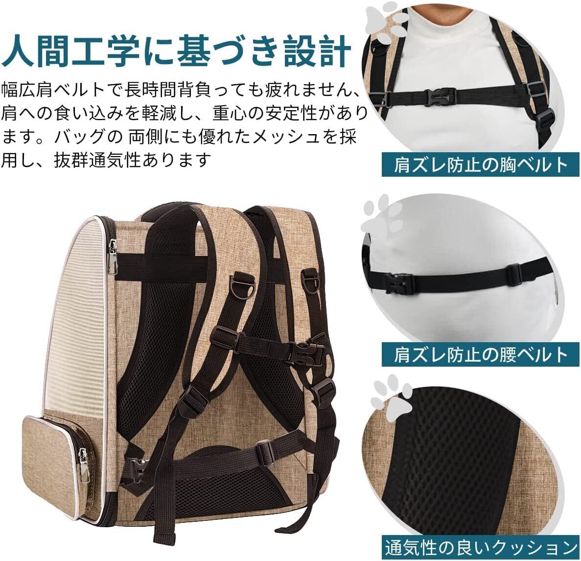 【飼い主にも優しいデザイン】1. 二重のチェストベルト:腰ベルト&チェストラップでしっかり身体に固定して、左右の摇れを軽減。2. また、背負った時に当たる背中と腰の部分に保護クッションがあり、安定感があって形も崩れにくいです。