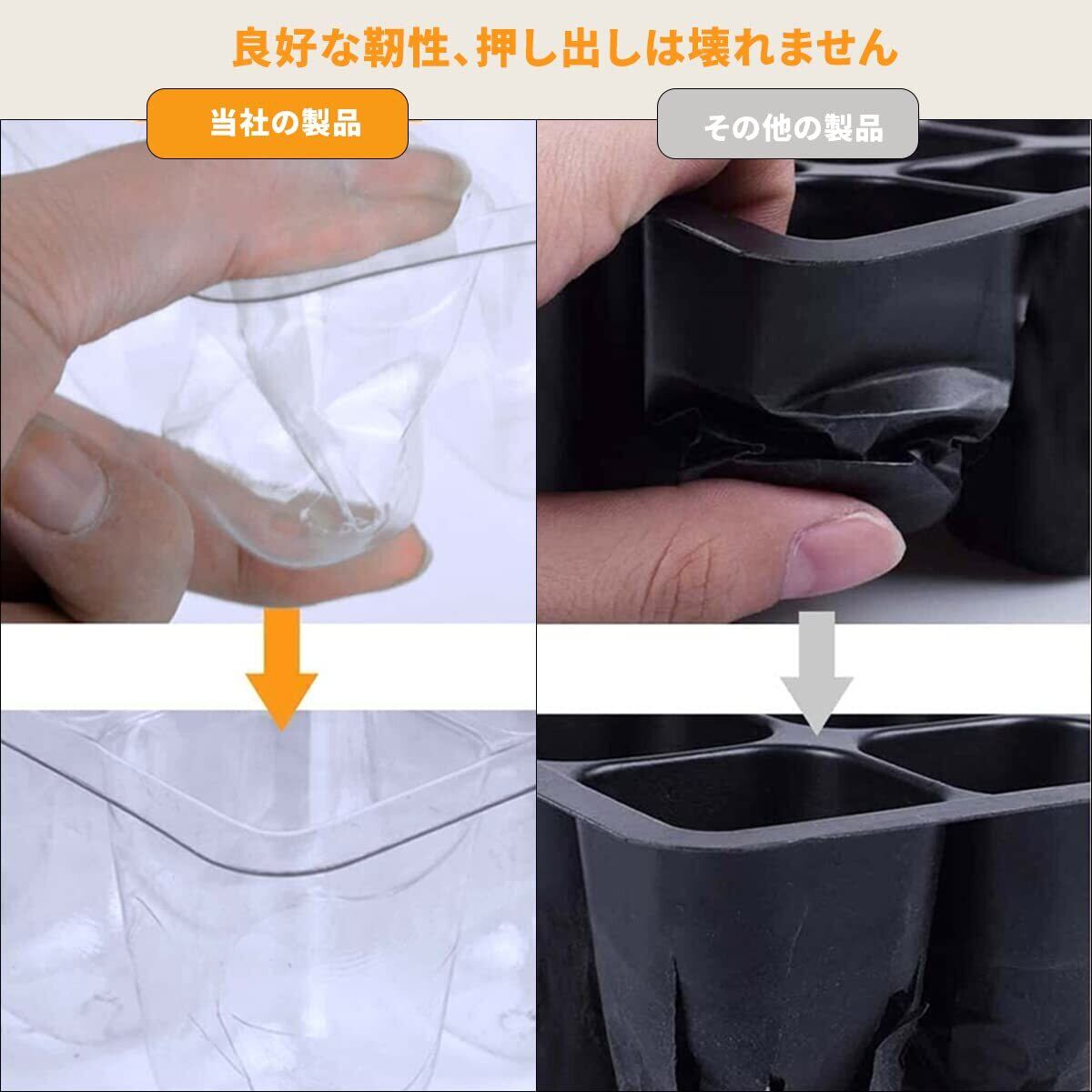 品質の厚い殻: 高品質のPETで作られた透明なプラスチックシェルは、高硬度、高靭性で作られた苗ボウルは、洗浄して再利用できます。この育苗ポットは種子の始まりに最適なサイズをデザインされた。各セルサイズは3.7x3.7x5.5cm、十分な間隔のセルは、混雑を防ぎ、少ないスペースでより多くの苗を可能にします。