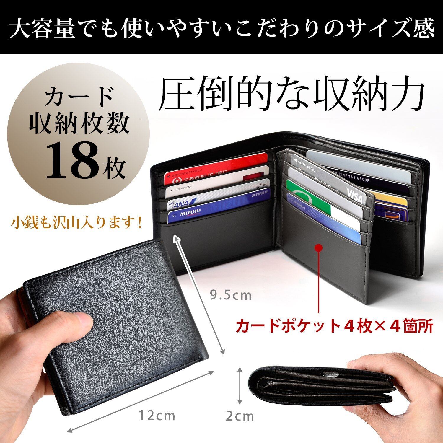 【大容量カード18枚収納】ビジネスシーンでもお使い頂ける大容量2つ折り本革財布。これ1つで必要な物全てを持ち歩けます。