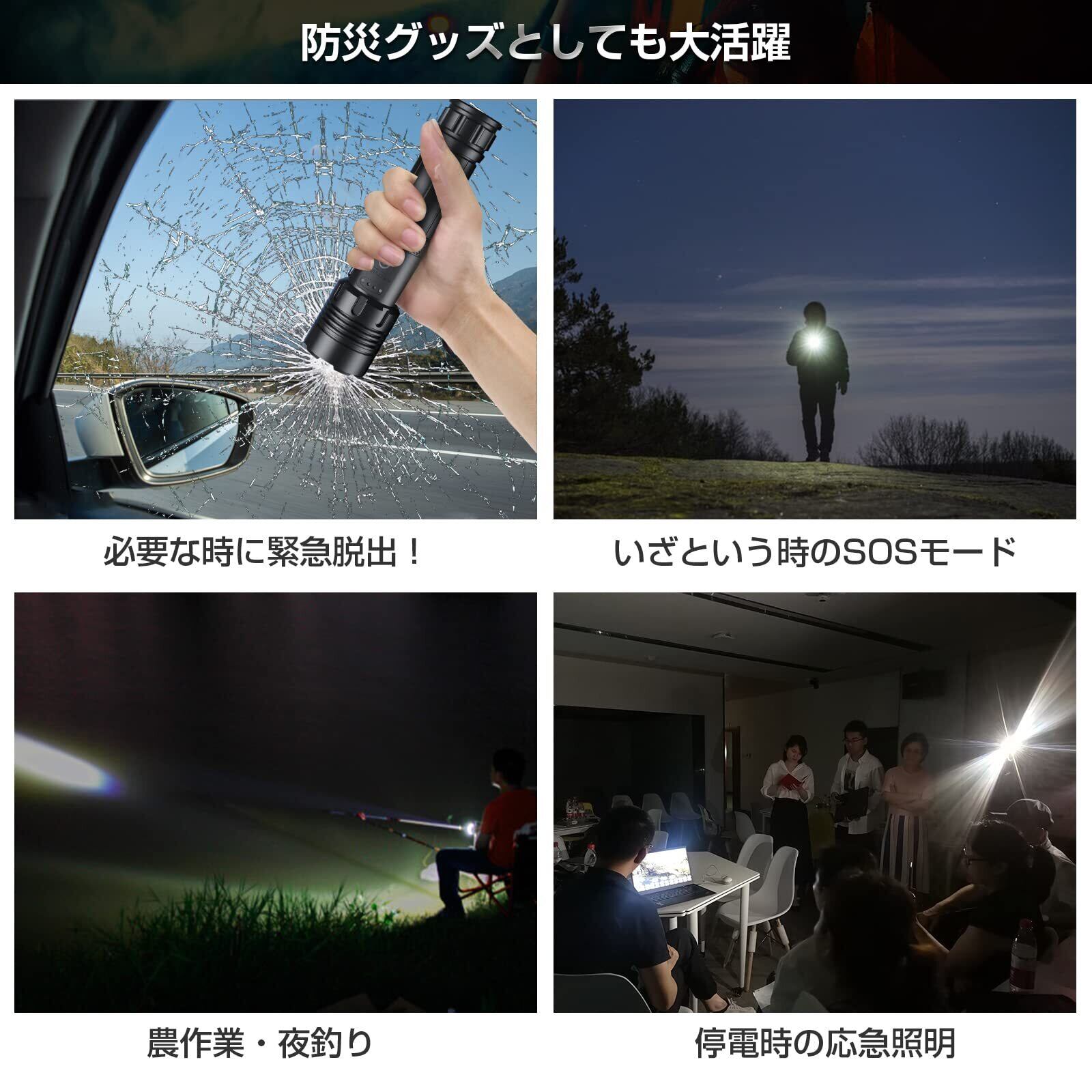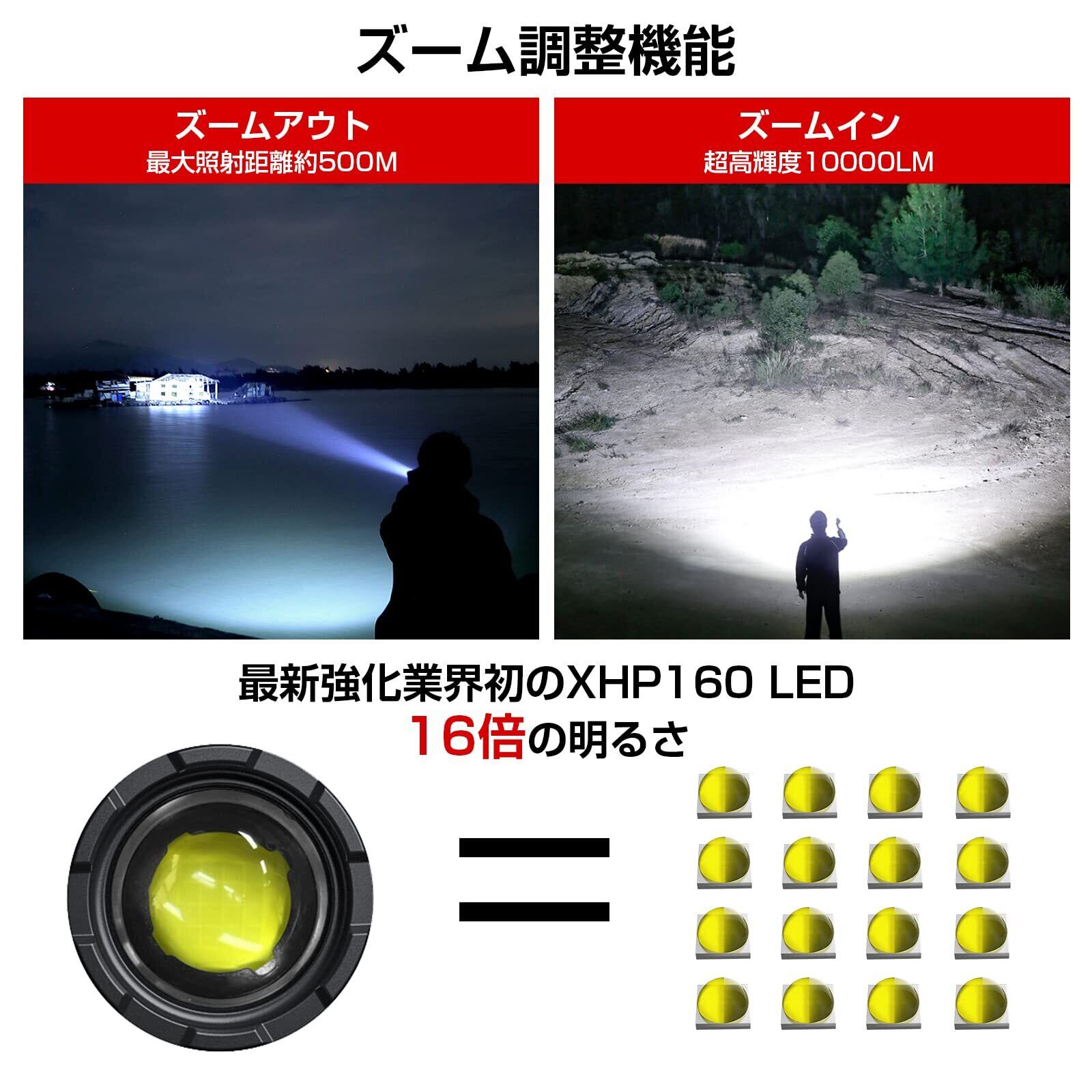 Eornmor 懐中電灯 強力【防災士監修・超高輝度・XHP160チップ】5000mAh 26650バッテリー付 軍用 最強 Type-C充電式/電池式 単4電池適用 ハンディライト COB作業灯 IPX6防水 7モード調光 ズーム式 耐衝撃 残量表示機能 作業用 停電 地震 避難対策 防災グッズ