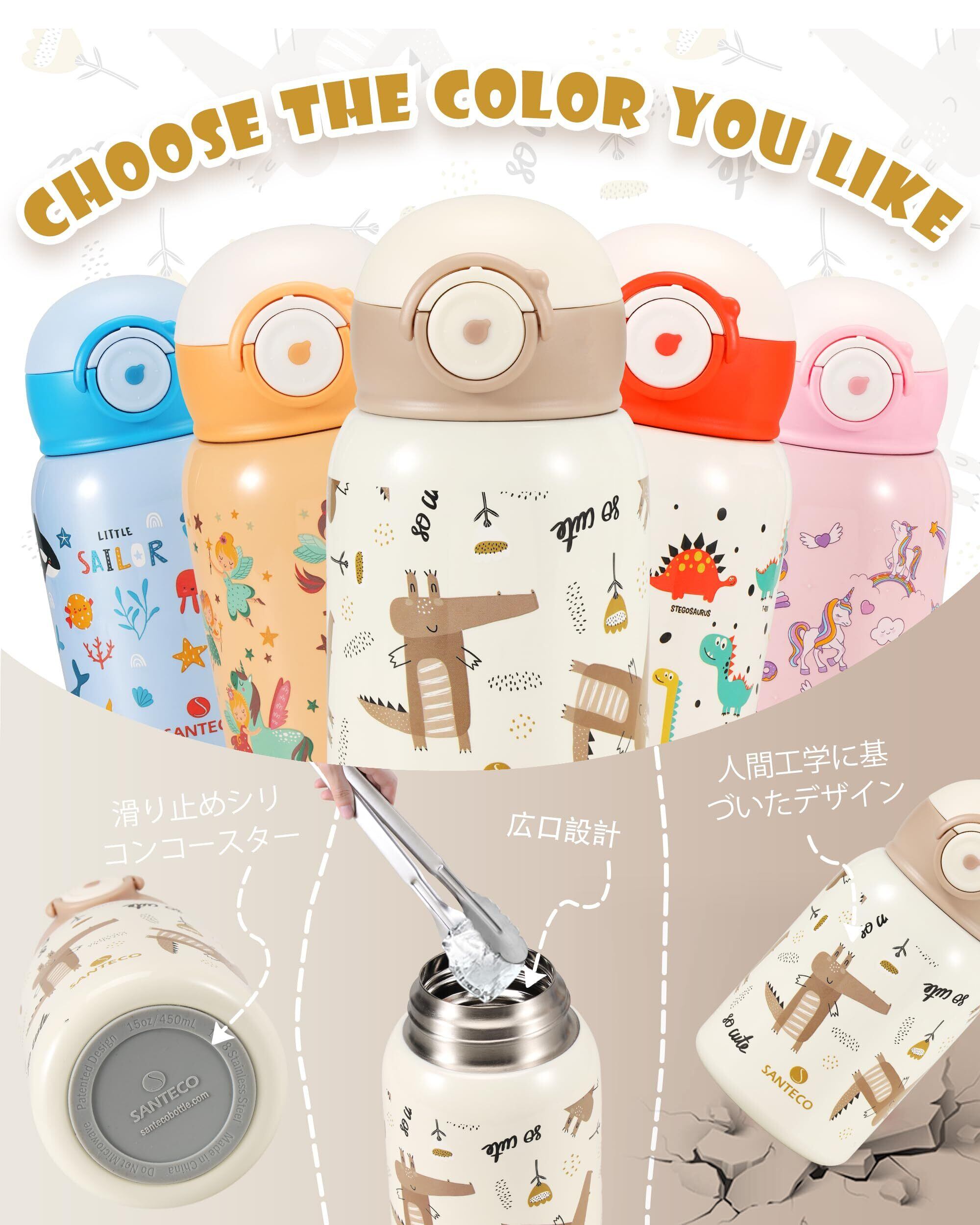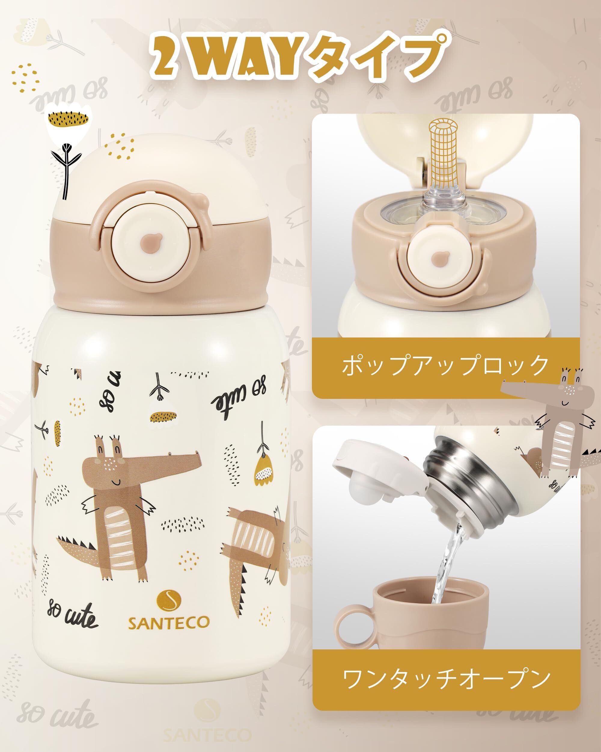 【数量限定】SANTECO 水筒 MARA 魔法瓶 450ML 子供用 ストロー付き 直飲み 2Wayタイプ スポーツドリンク対応 炭酸対応 保冷 保温 真空断熱 広口 316ステンレススチール おしゃれ 可愛い 子ども 小学生 キッズ 男の子 女の子 クロコダイル (カーキ) | ニコニコSHOP