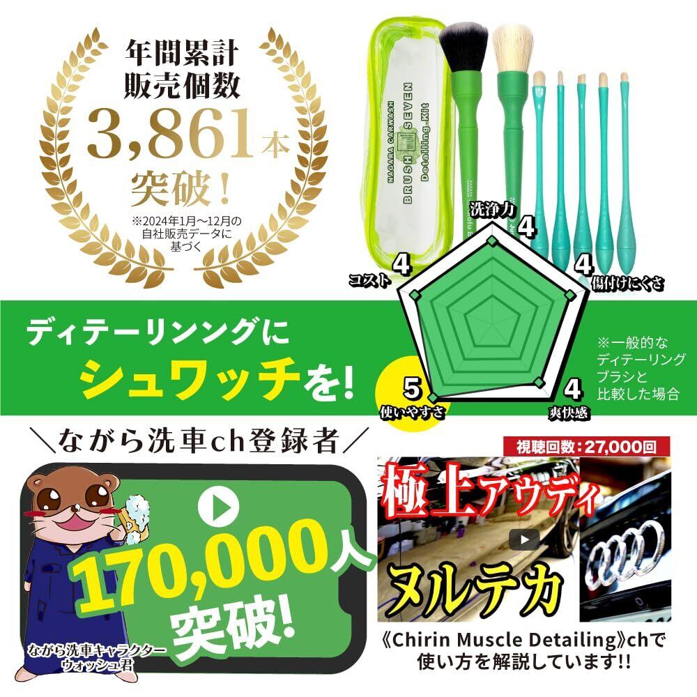 【ながら洗車】ブラシ 7『 ディテーリングにシュワッチを 』7本 セット ディテーリングブラシ Brush 7 用途別細部洗浄ブラシ 徹底洗車 ディテーリングブラシ カーケア エンブレム掃除 タイヤホイール洗浄 隙間掃除