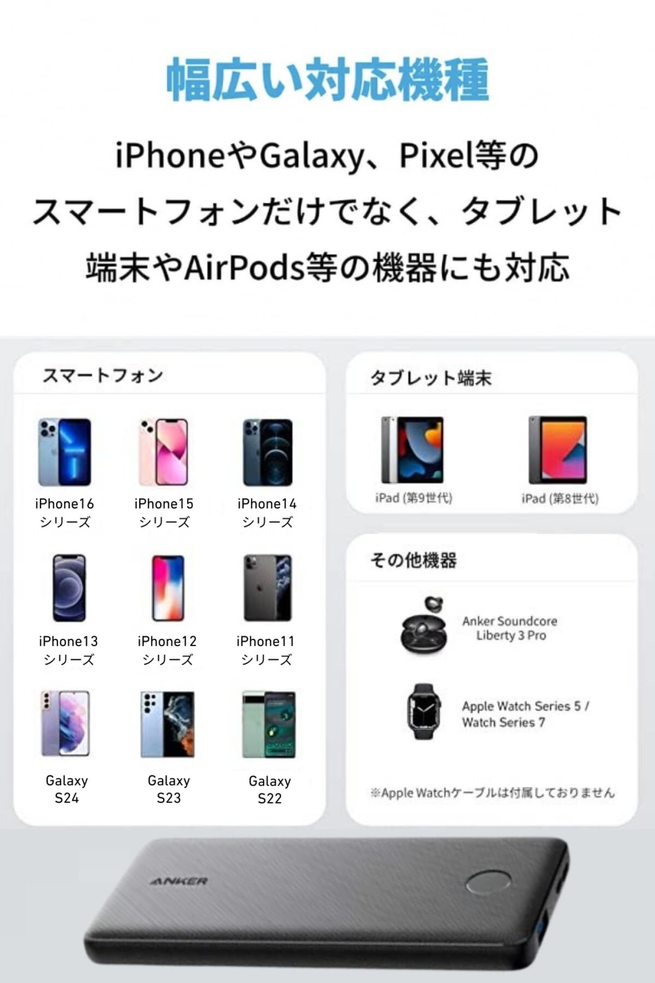 薄型、でも大容量:PowerCore Slim 10000は、業界トップクラスにスリムで軽量なデザインながら、iPhone 14に約2回、その他ほとんどのスマートフォンに複数回の充電が可能です。