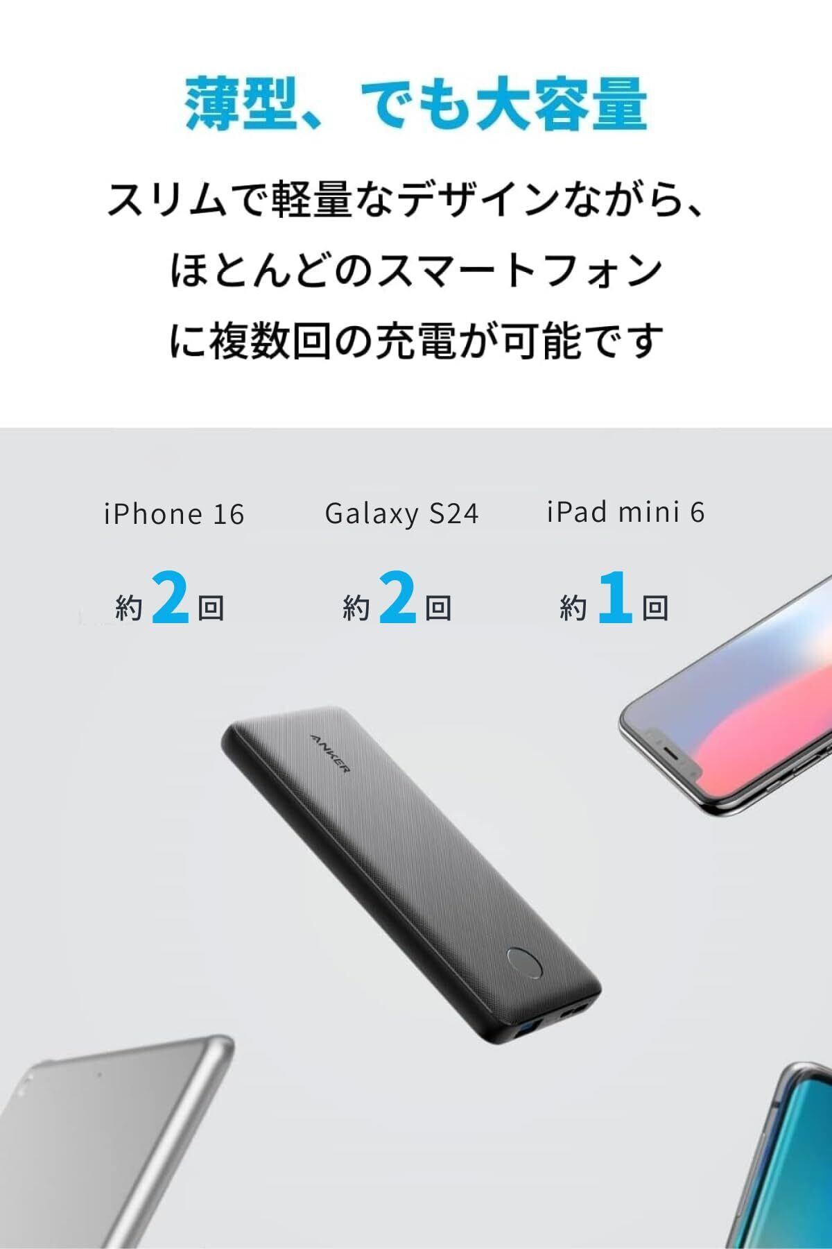 Anker PowerCore Slim 10000(モバイルバッテリー 大容量 薄型 10000mAh)【USB-C入力ポート/PSE技術基準適合/PowerIQ & VoltageBoost/低電流モード搭載】iPhone & Android 各種対応(ブラック)
