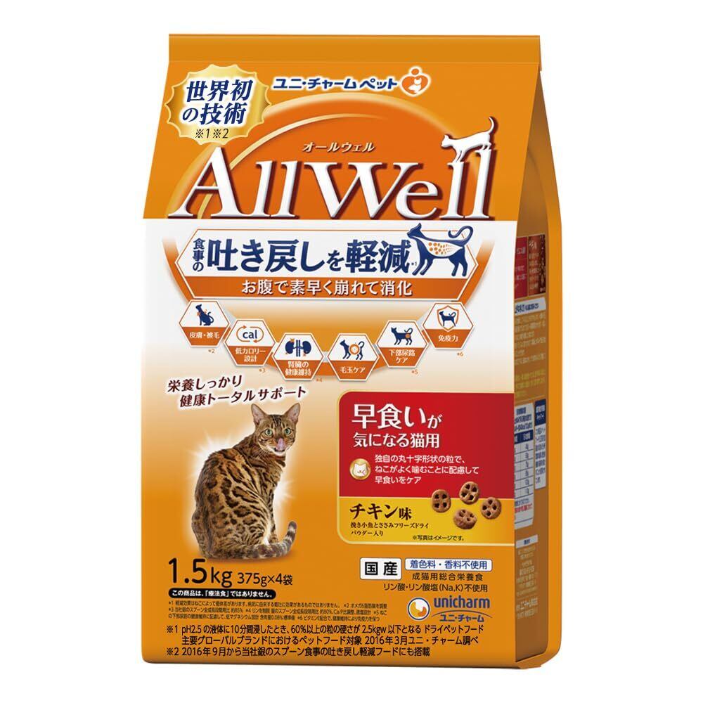 [吐き戻し軽減] All Well(オールウェル) キャットフード ドライ [早食いが気になる猫用] チキン 1.5kg【国産】