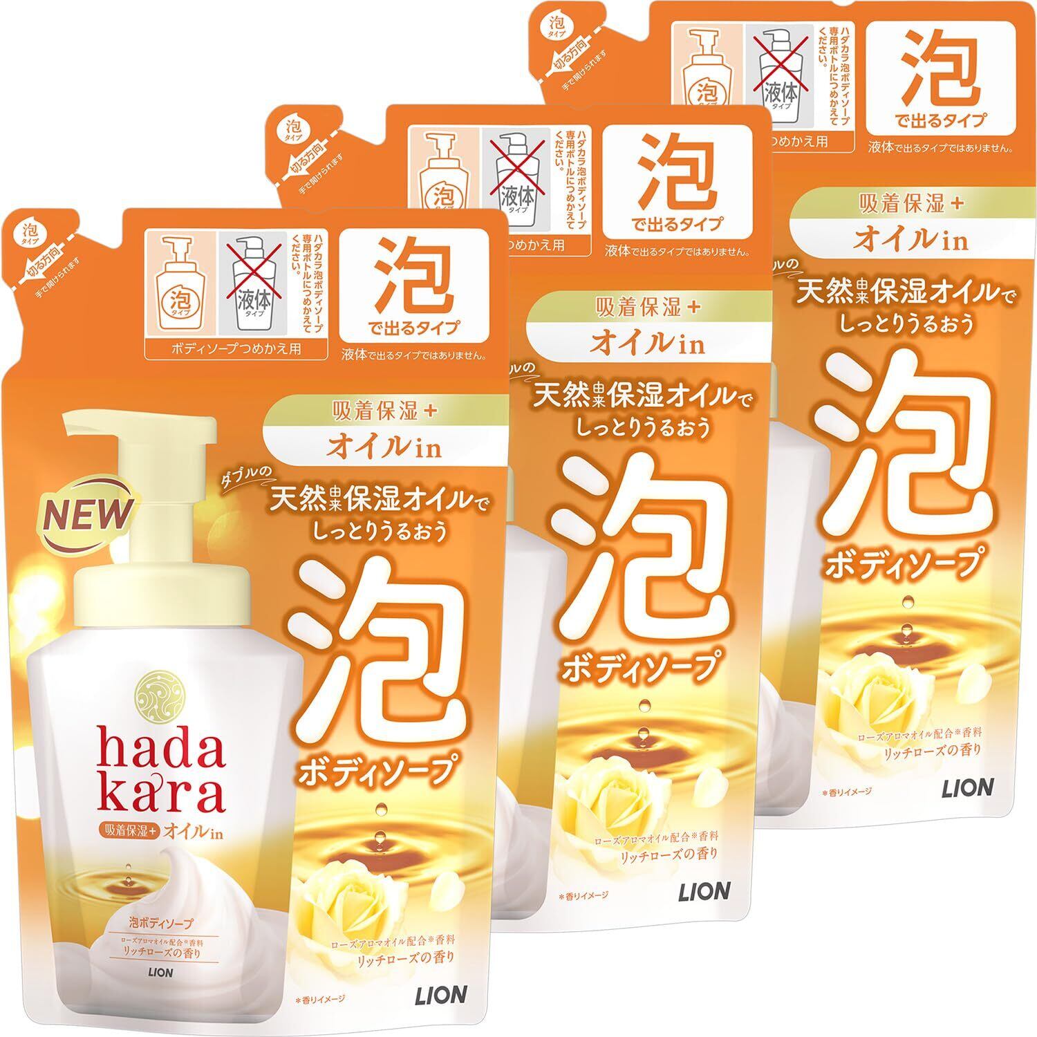 【Amazon.co.jp限定】 hadakara(ハダカラ) ボディーソープ 泡タイプ オイルイン リッチローズの香り 詰め替え 420ml×3個 保湿