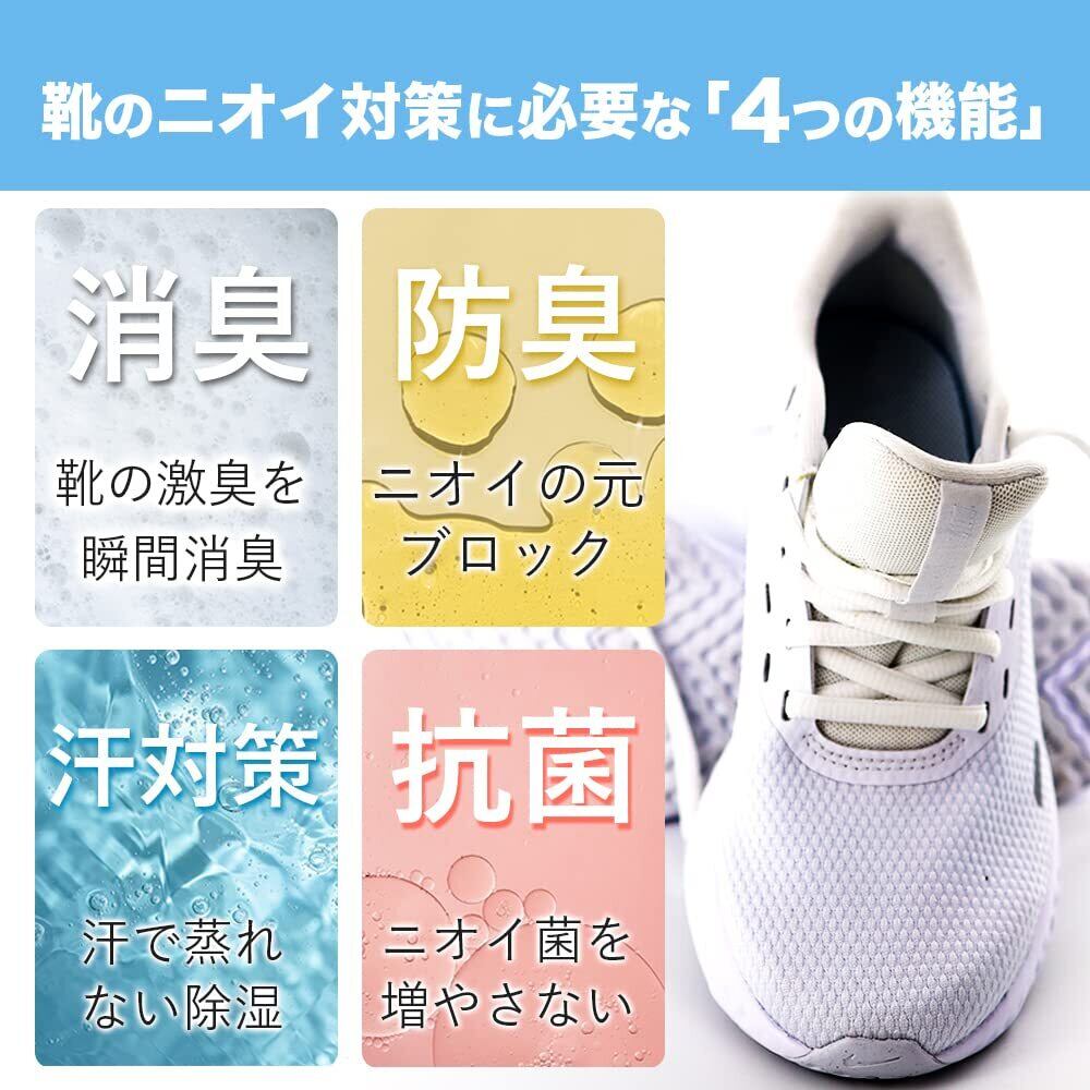 【簡単一振り】消臭効果はもちん除菌・抗菌で足元を清潔、快適に保ち嫌なニオイの原因菌をブロック!出かける前に1振りするだけでOK!季節の変わり目に靴箱に収納する前に1振りしてください。次の年出すときにはニオイ菌を除菌!