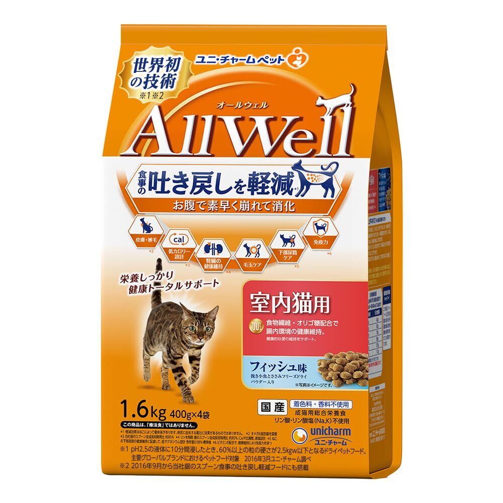 [吐き戻し軽減] All Well(オールウェル) キャットフード ドライ [室内猫用] フィッシュ 1.6kg【国産】