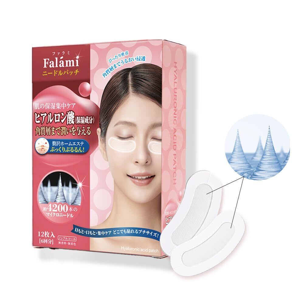 【なぜFalamiのマイクロニードルパッチ】 ヒアルロン酸をはじめとする、ビタミン、コラーゲン、ツボクサ抽出エキスなど、厳選した7つの成分(※1)を微細な針状にして、しっかりと角質層まで届けます。整肌成分が多く配合されていると、肌への多角的なアプローチが叶うため、ハリ感をアップする効果が期待できます。目元のハリ不足や季節性の肌の乾燥には、こちらのマイクロニードルパッチをぜひお試しください。 ※1 ビタミンC(製品の酸化防止剤) 、ナイアシンアミド(整肌剤)、ヒアルロン酸(保湿剤)、コラーゲン(保湿剤)、ツボクサ抽出エキス(整肌剤)、イチョウ葉(キノコ)エキス(整肌剤)、アンヒドロキシリトール(保湿剤)