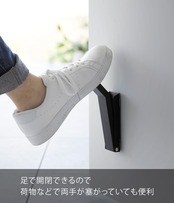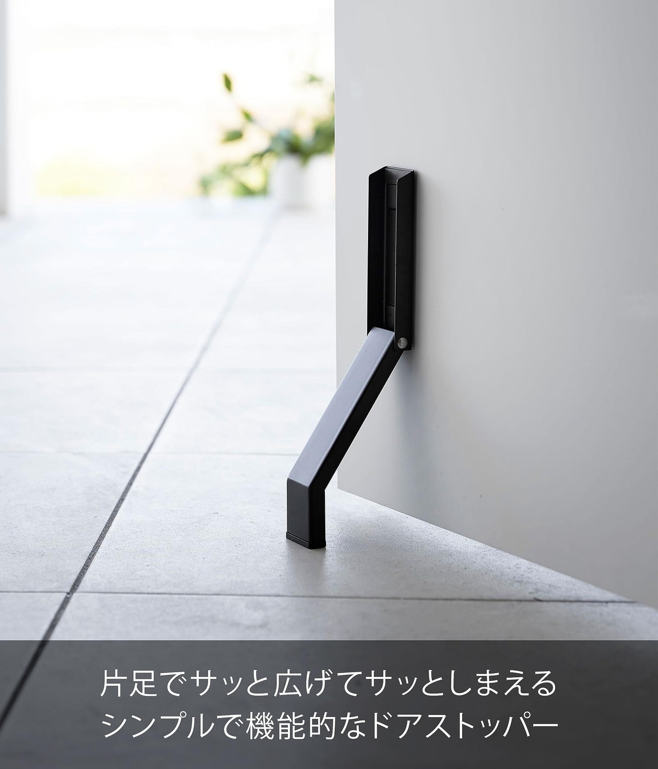 【在庫処分】山崎実業(Yamazaki) マグネット 折り畳みドアストッパー ブラック (使用時)約W4.5×D7×H28cm タワー tower 強力マグネット 簡単取付 玄関ドア 片足で操作可能 3721 | ニコニコSHOP