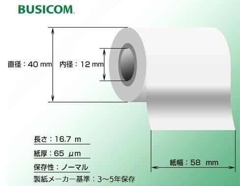 ロール紙サイズ:幅58mm×外径40mm×内径12mm (58×40×12)