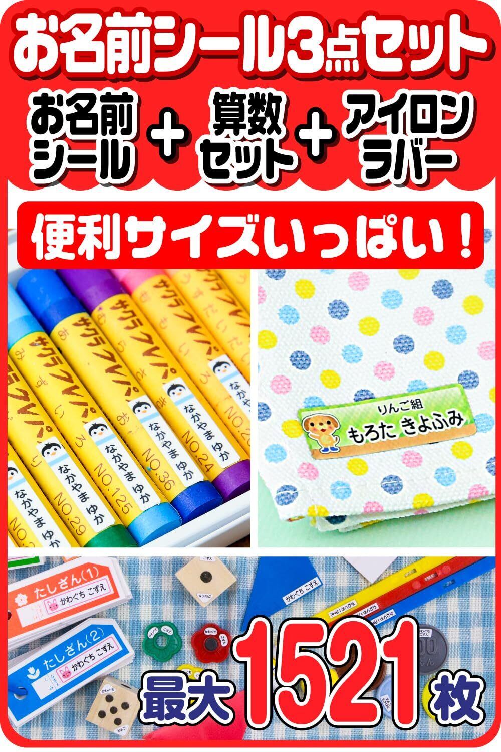 ホビナビ 【お名前シール申込案内書】 名前シール お得な3点セット お名前シール + 算数セット + アイロンラバー 防水 最大1521枚 デザイン310種 name-3namaru-fba