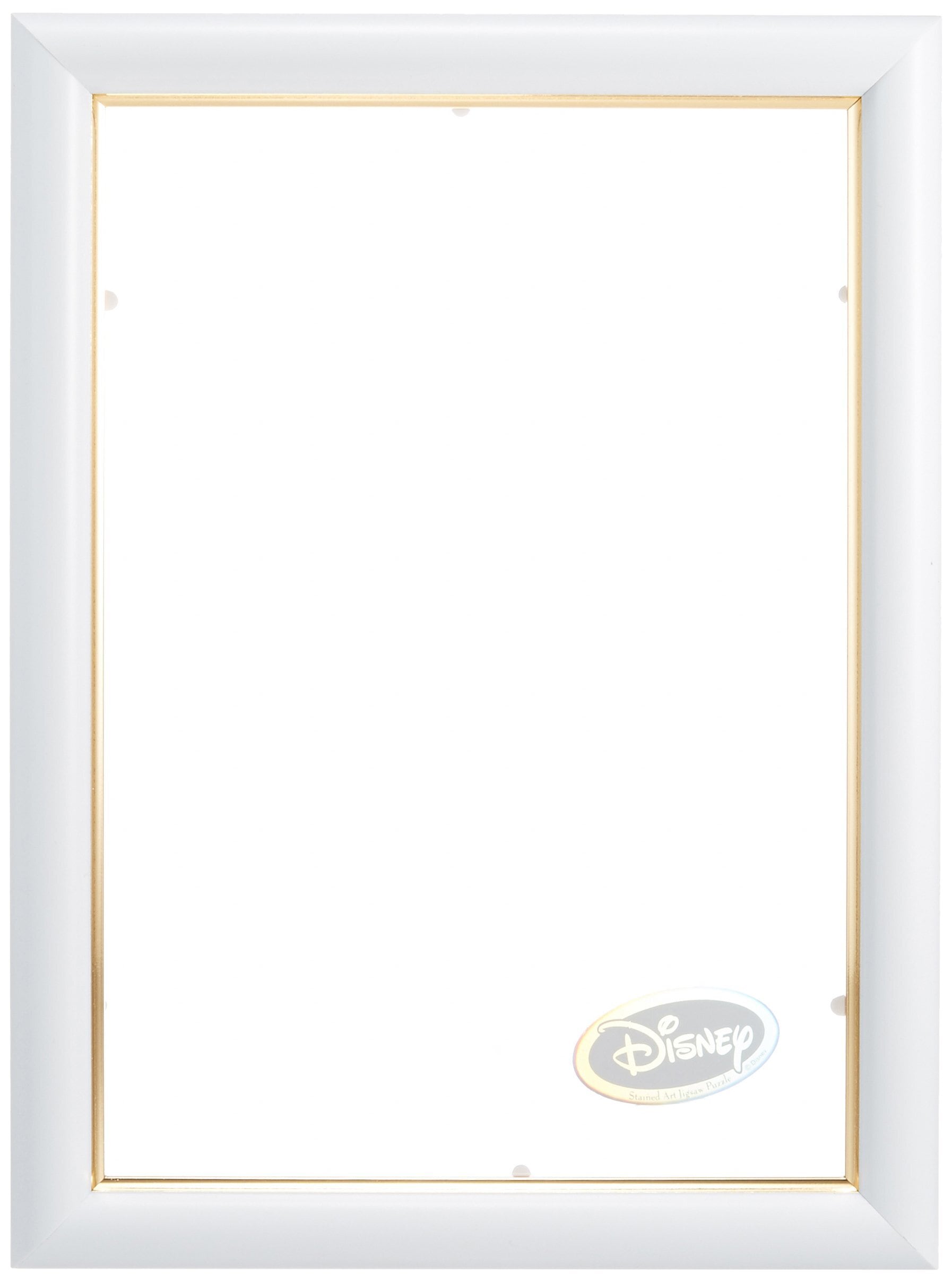 テンヨー(Tenyo) 【日本製】 パズルフレーム ディズニー ステンドアート専用 ぎゅっと266ピース用 ホワイト (18.2x25.7cm) 金モール仕様 置き飾り用スタンド付 DISNEYホログラムエンブレムプレート付